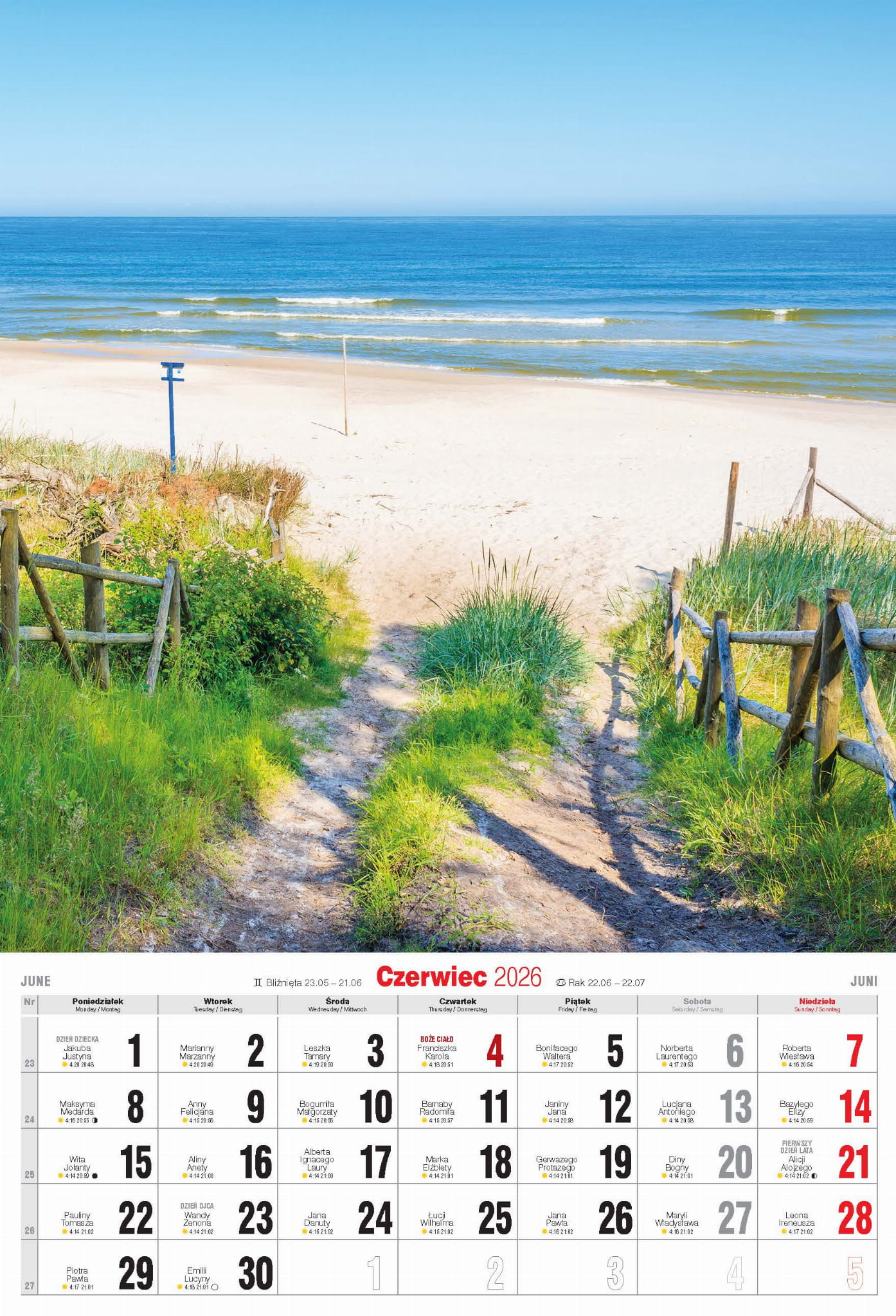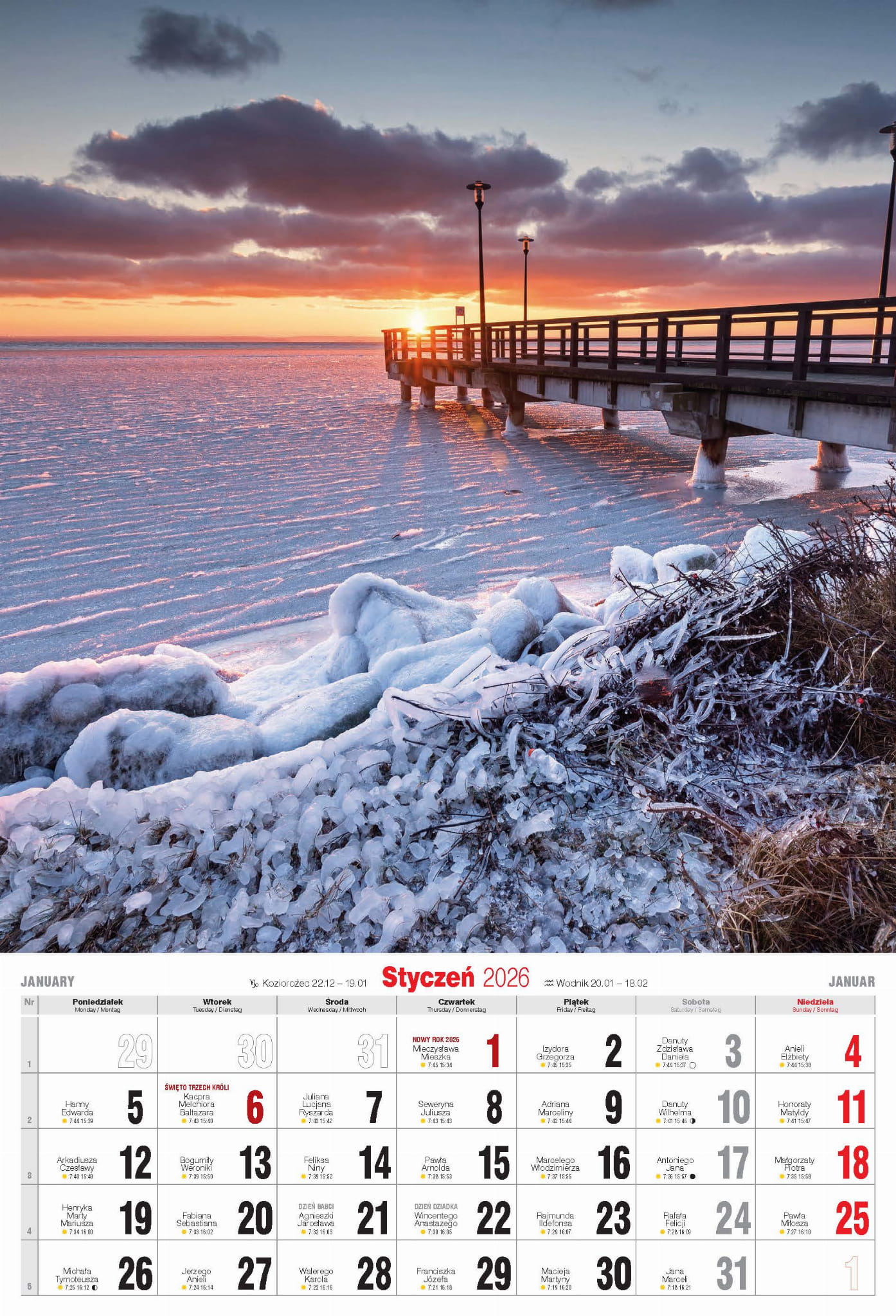 Duży kalendarz ścienny, drukowany na grubym papierze powlekanym.