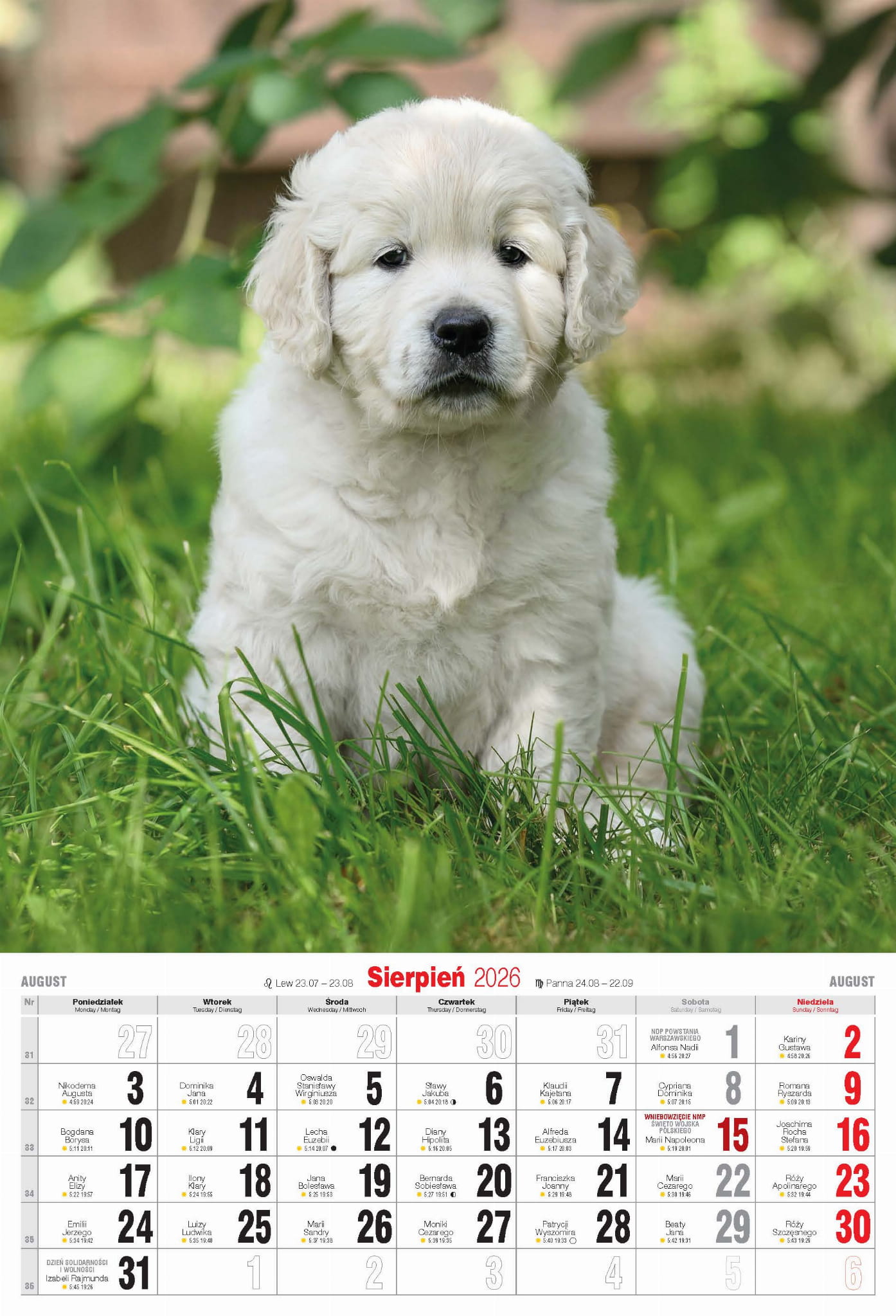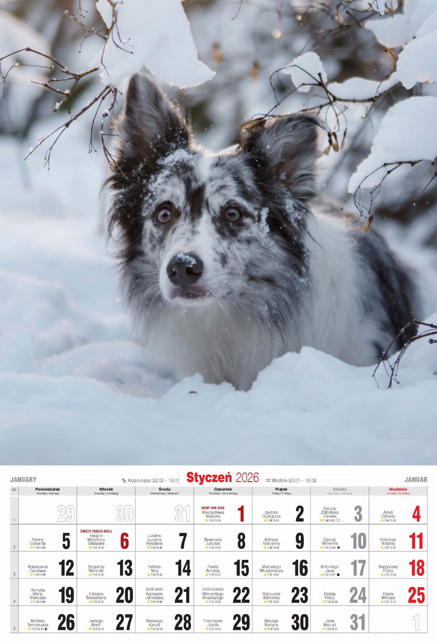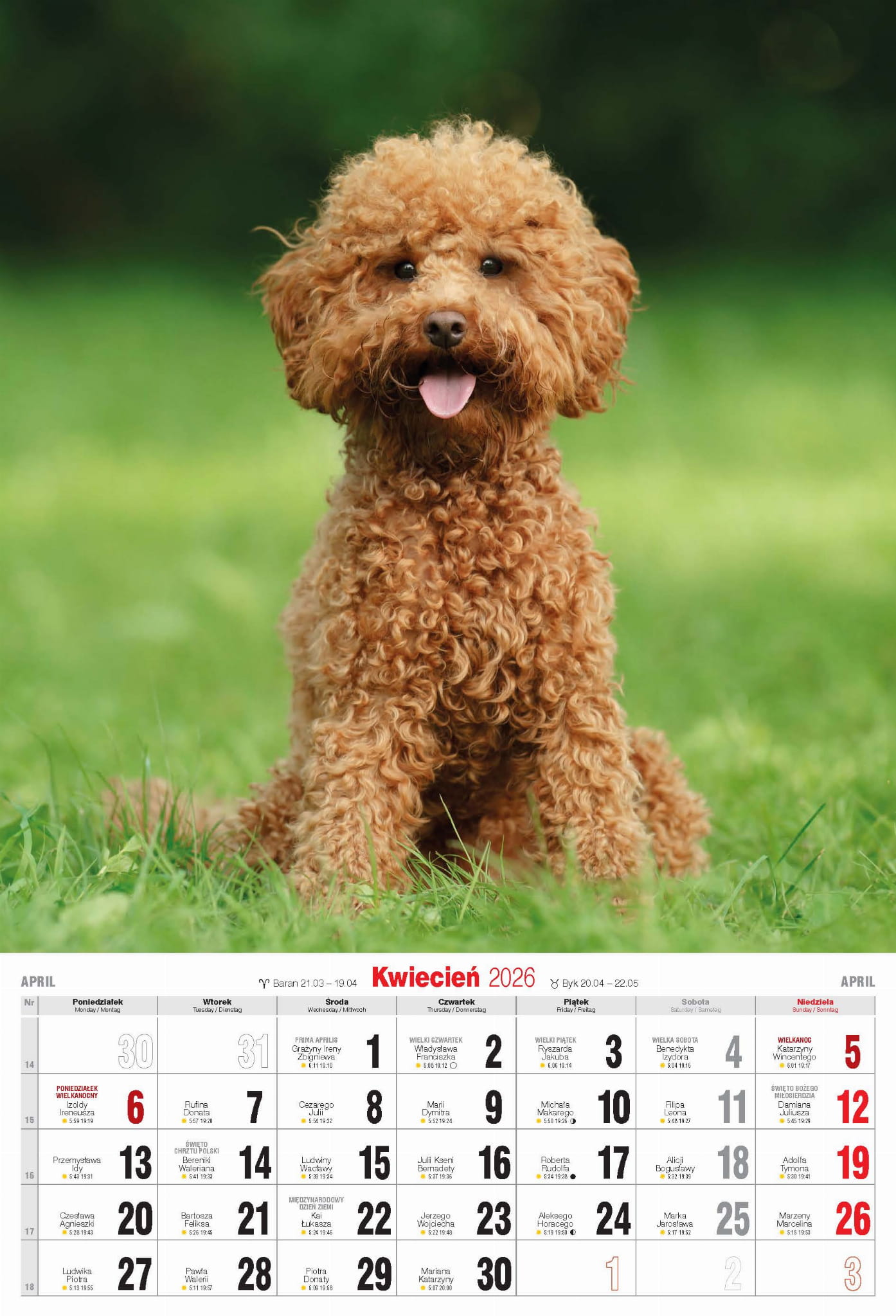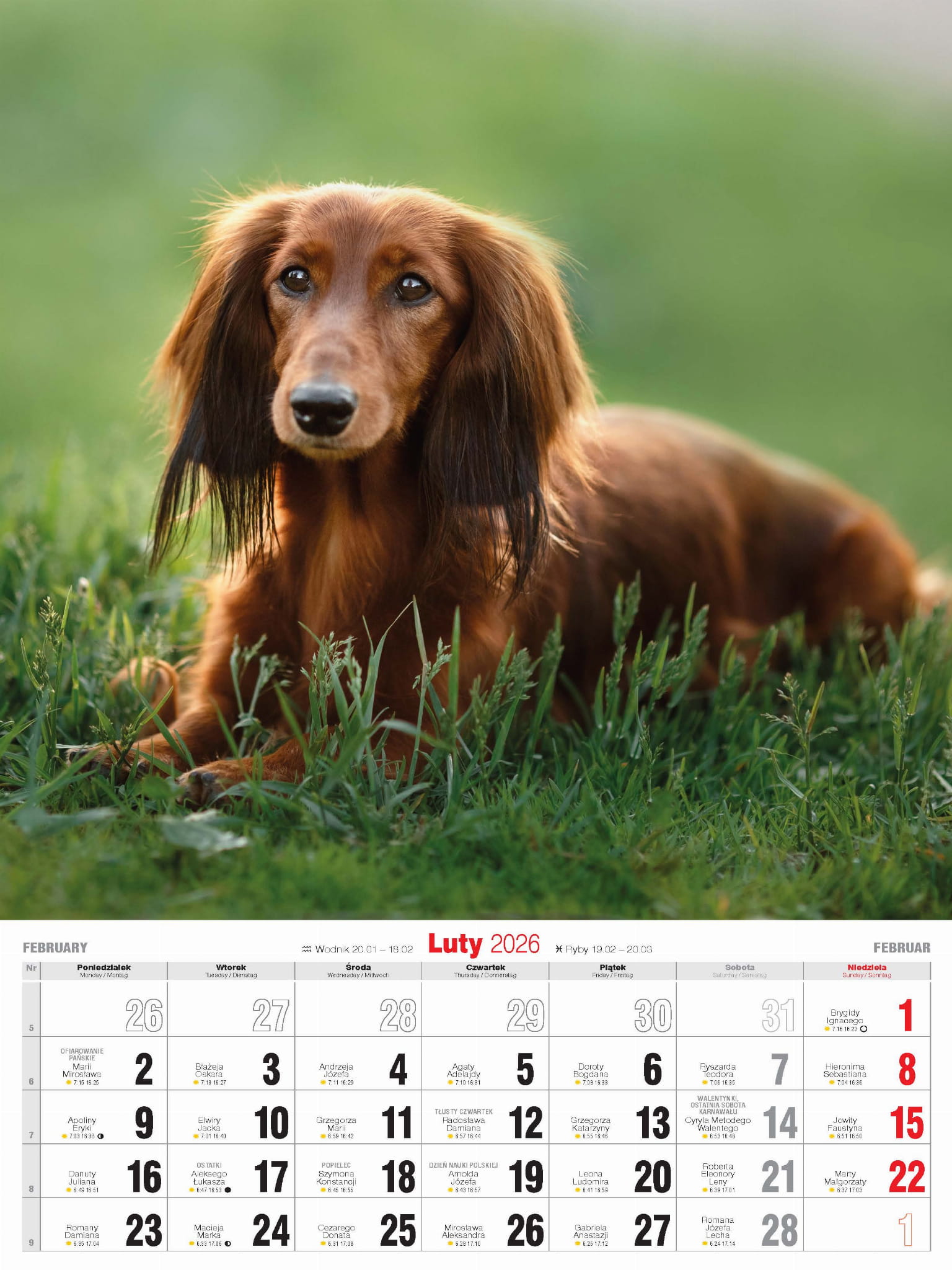 Duży kalendarz ścienny, drukowany na grubym papierze powlekanym.