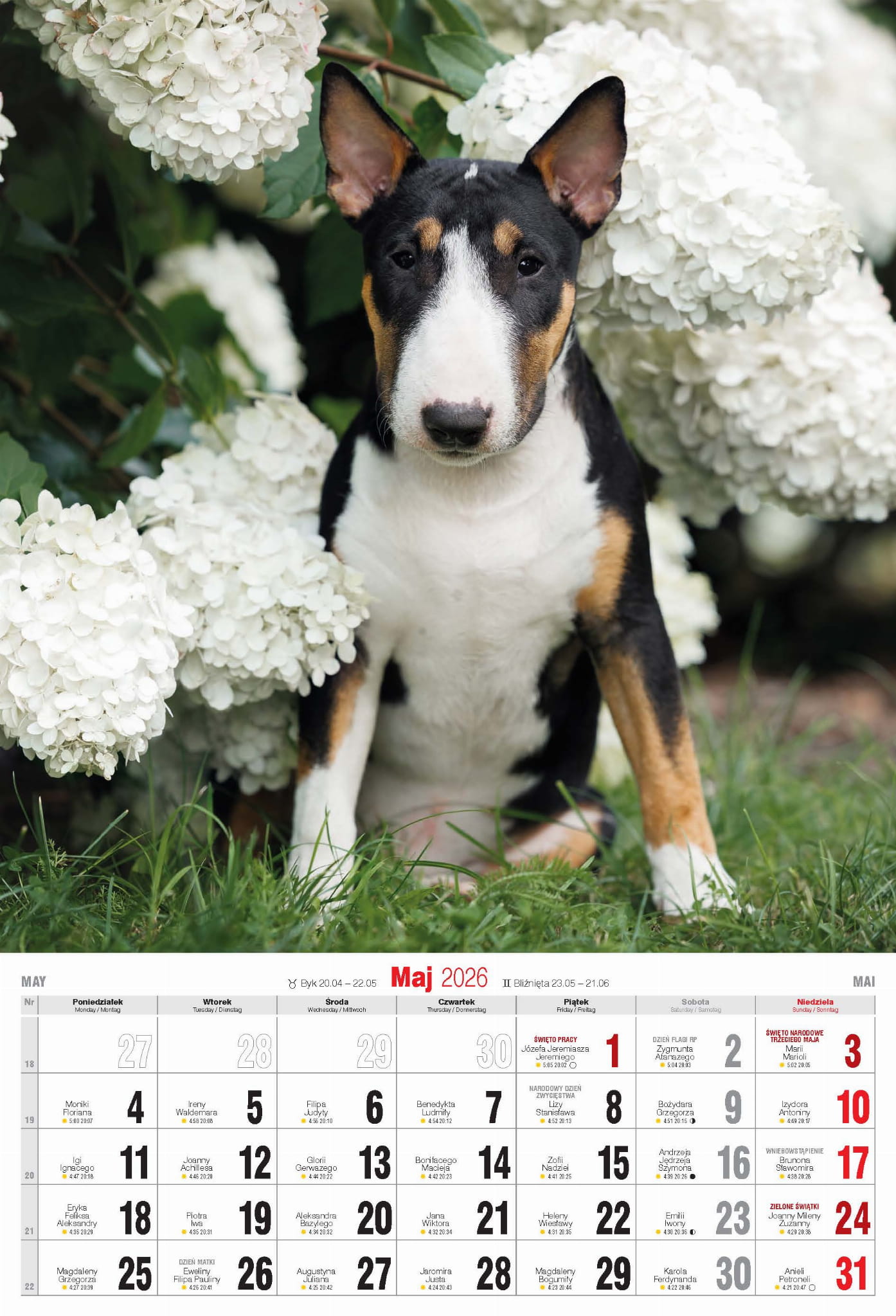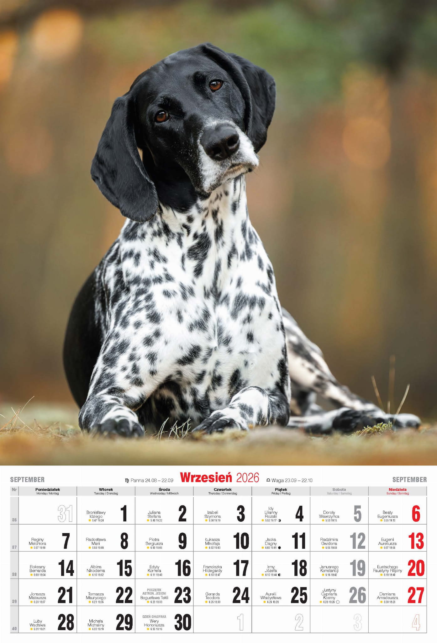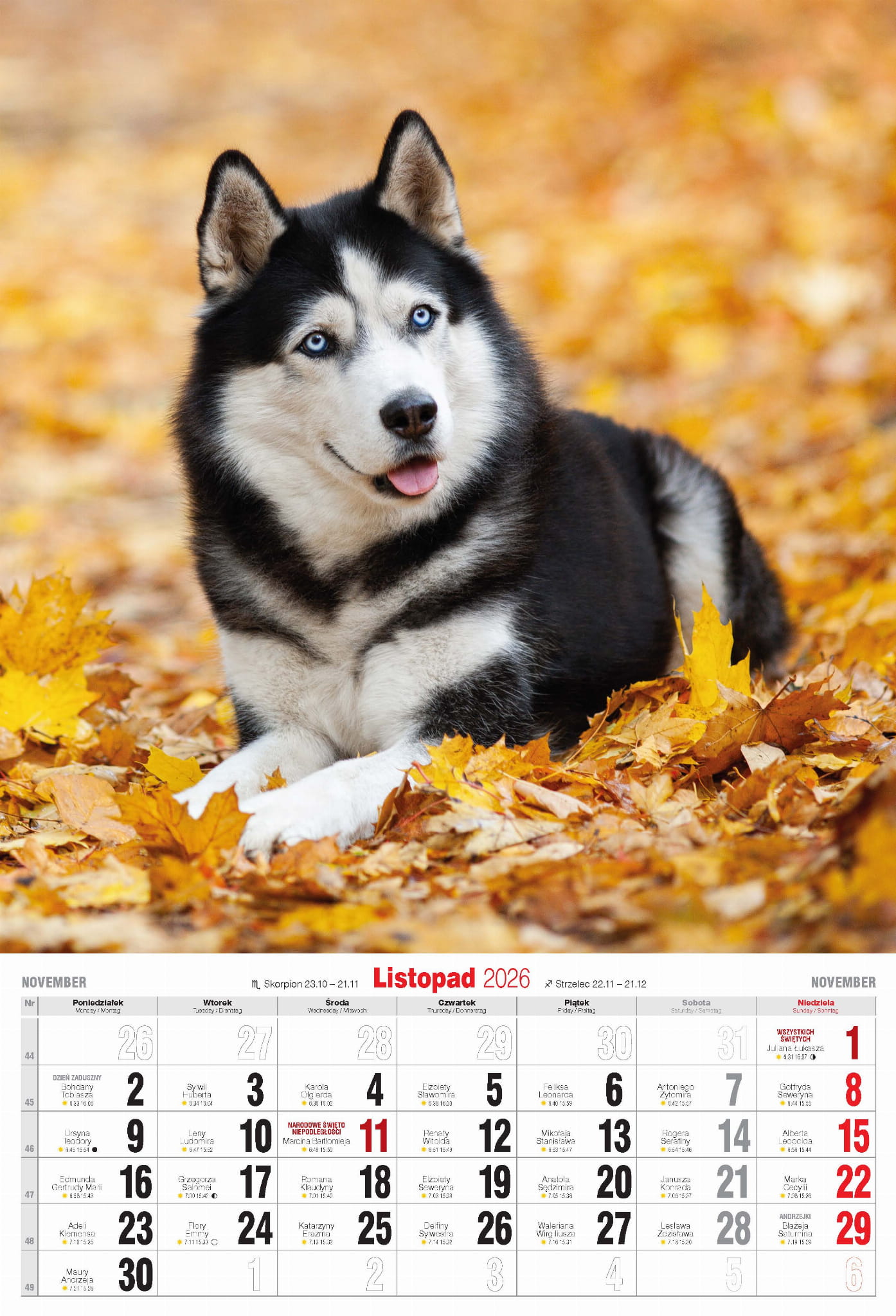 Duży kalendarz ścienny, drukowany na grubym papierze powlekanym.