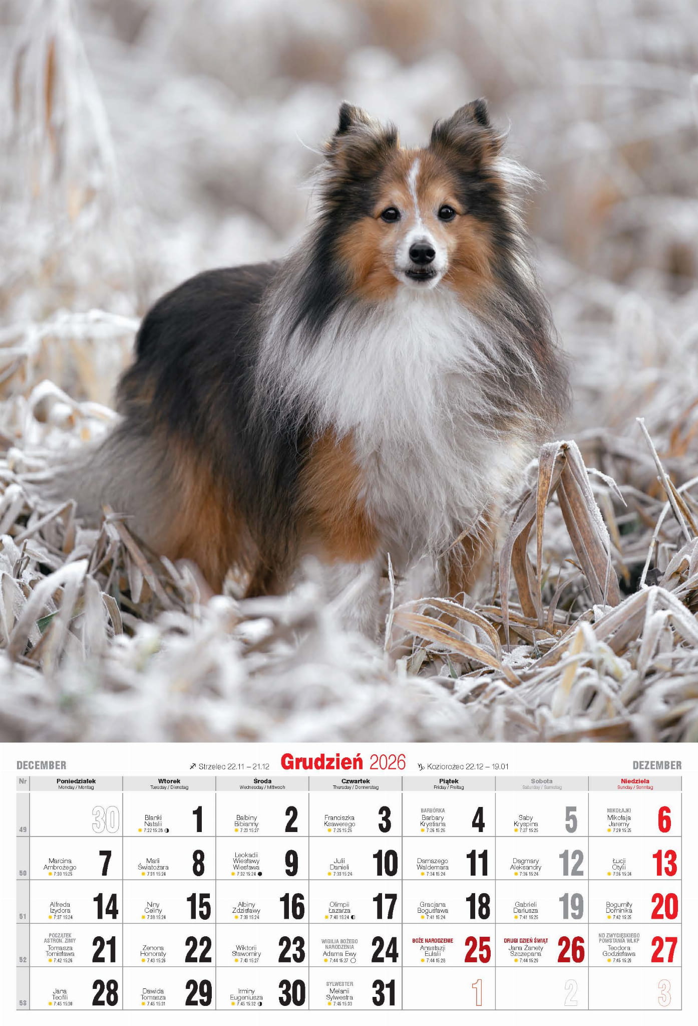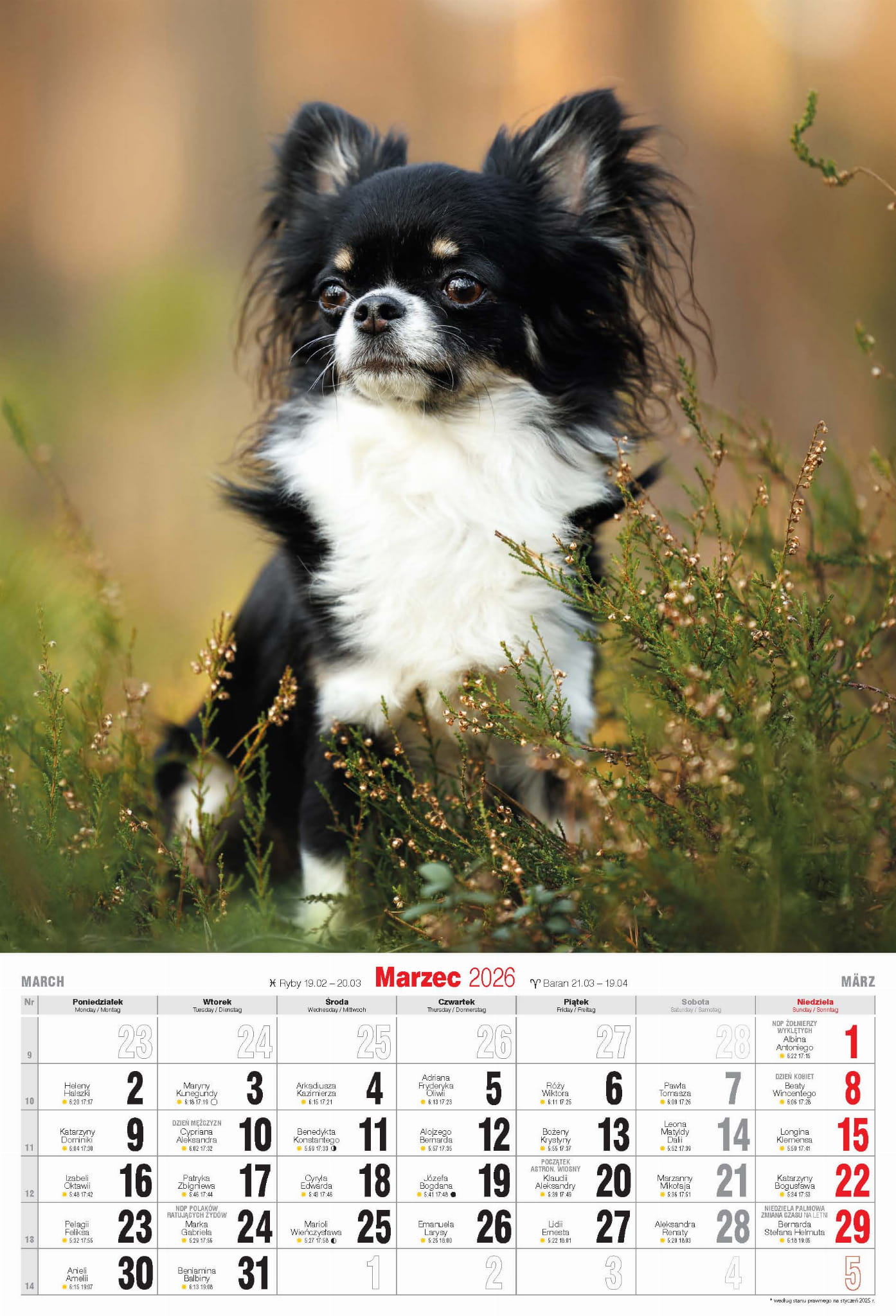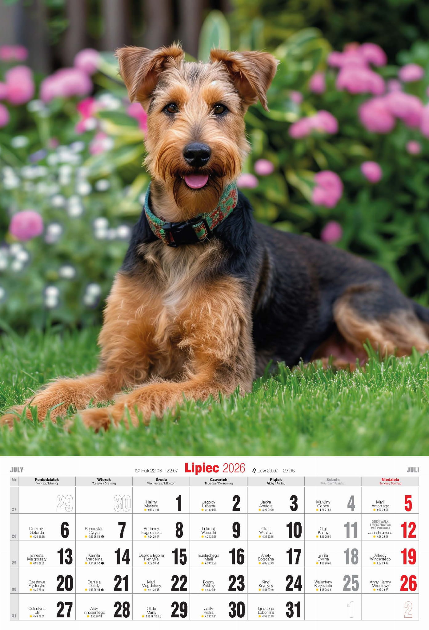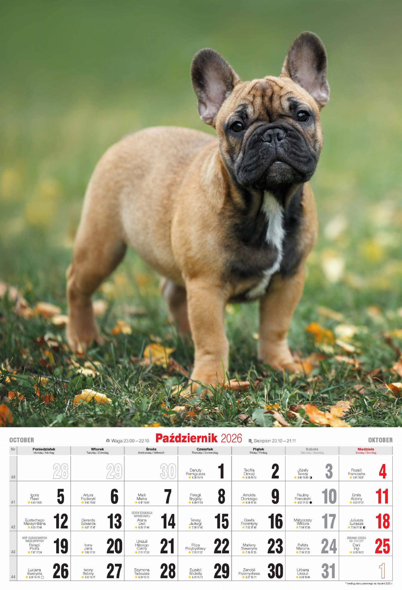 Duży kalendarz ścienny, drukowany na grubym papierze powlekanym.
