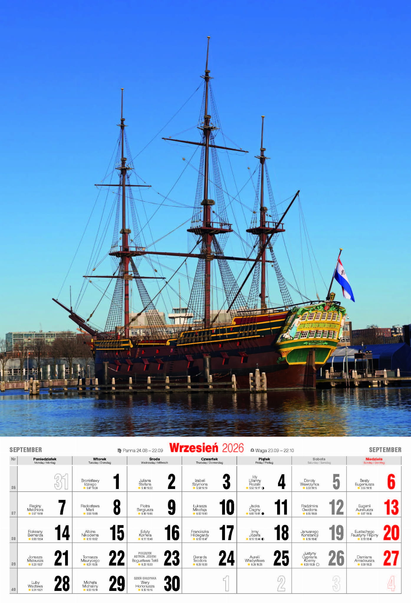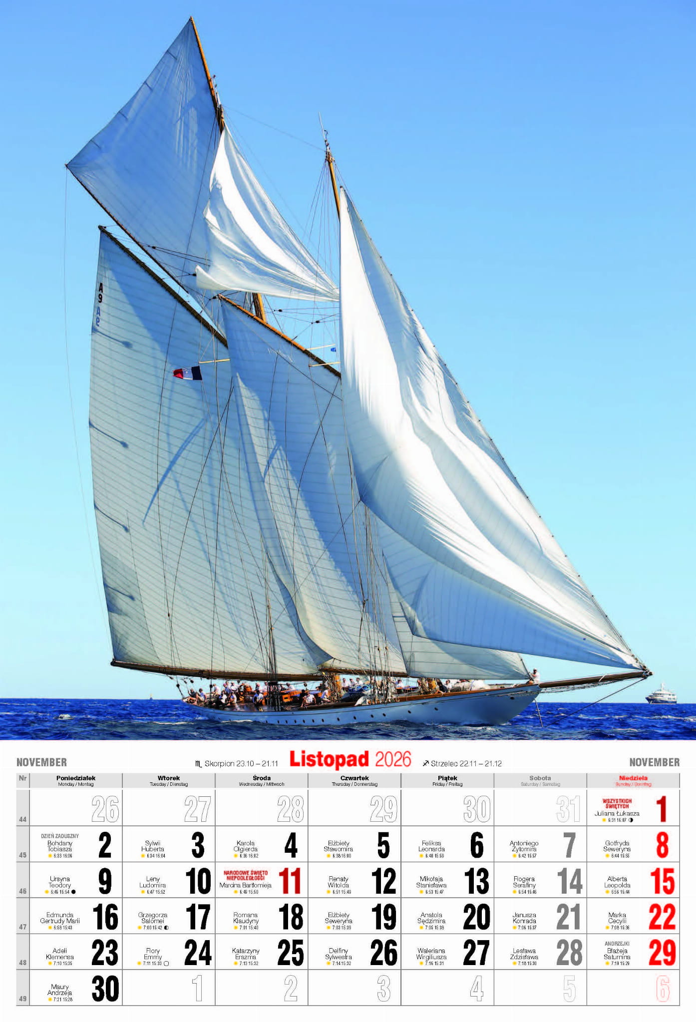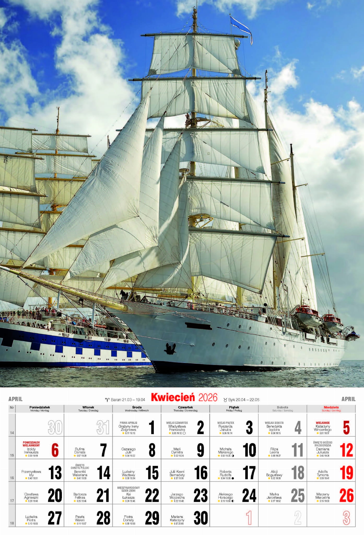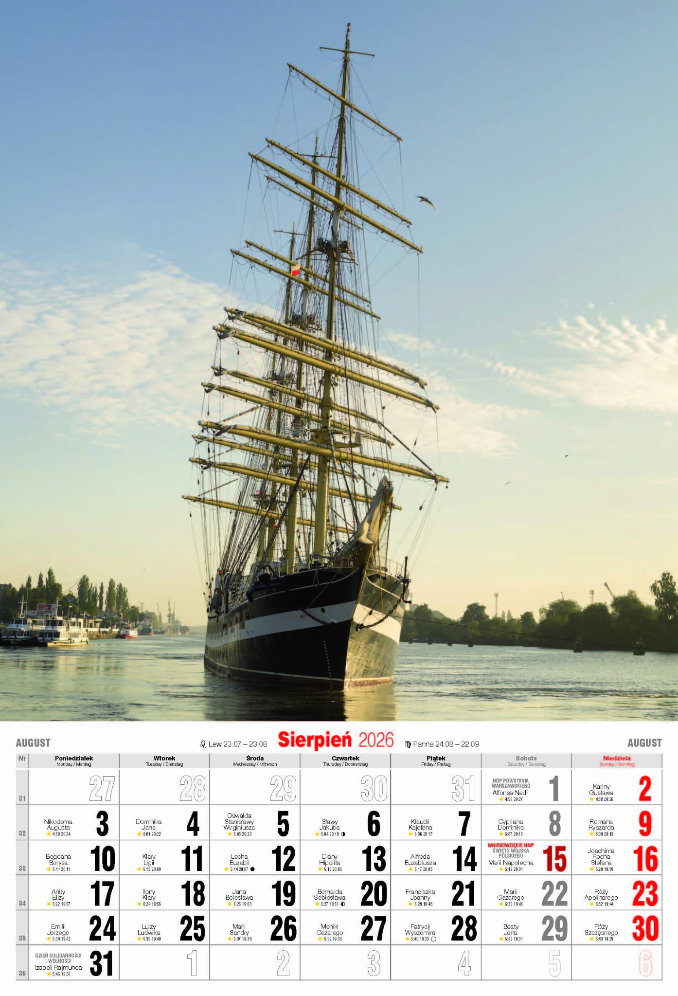 Duży kalendarz ścienny, drukowany na grubym papierze powlekanym.