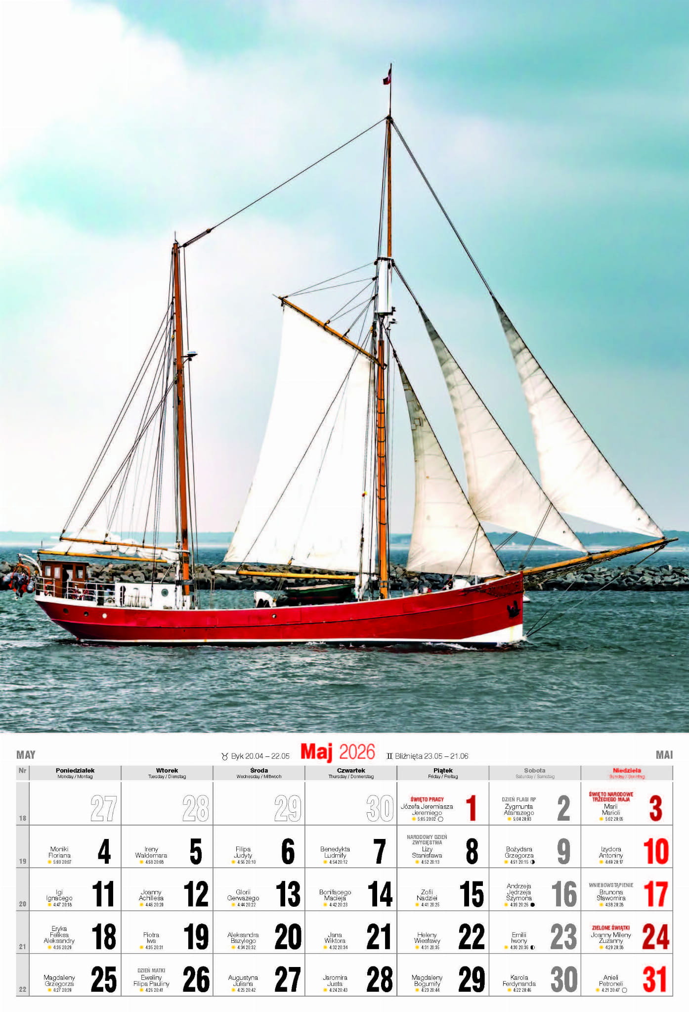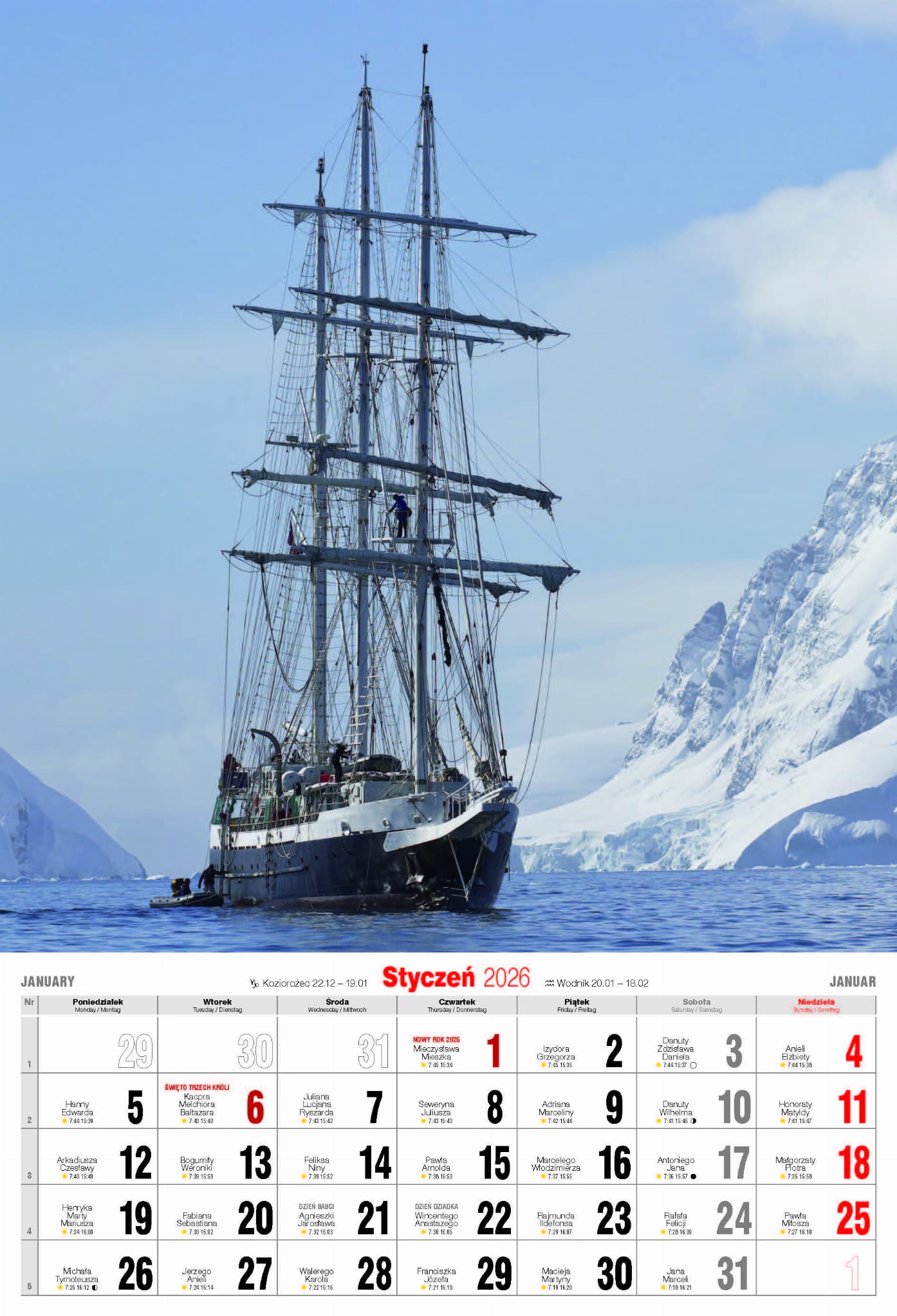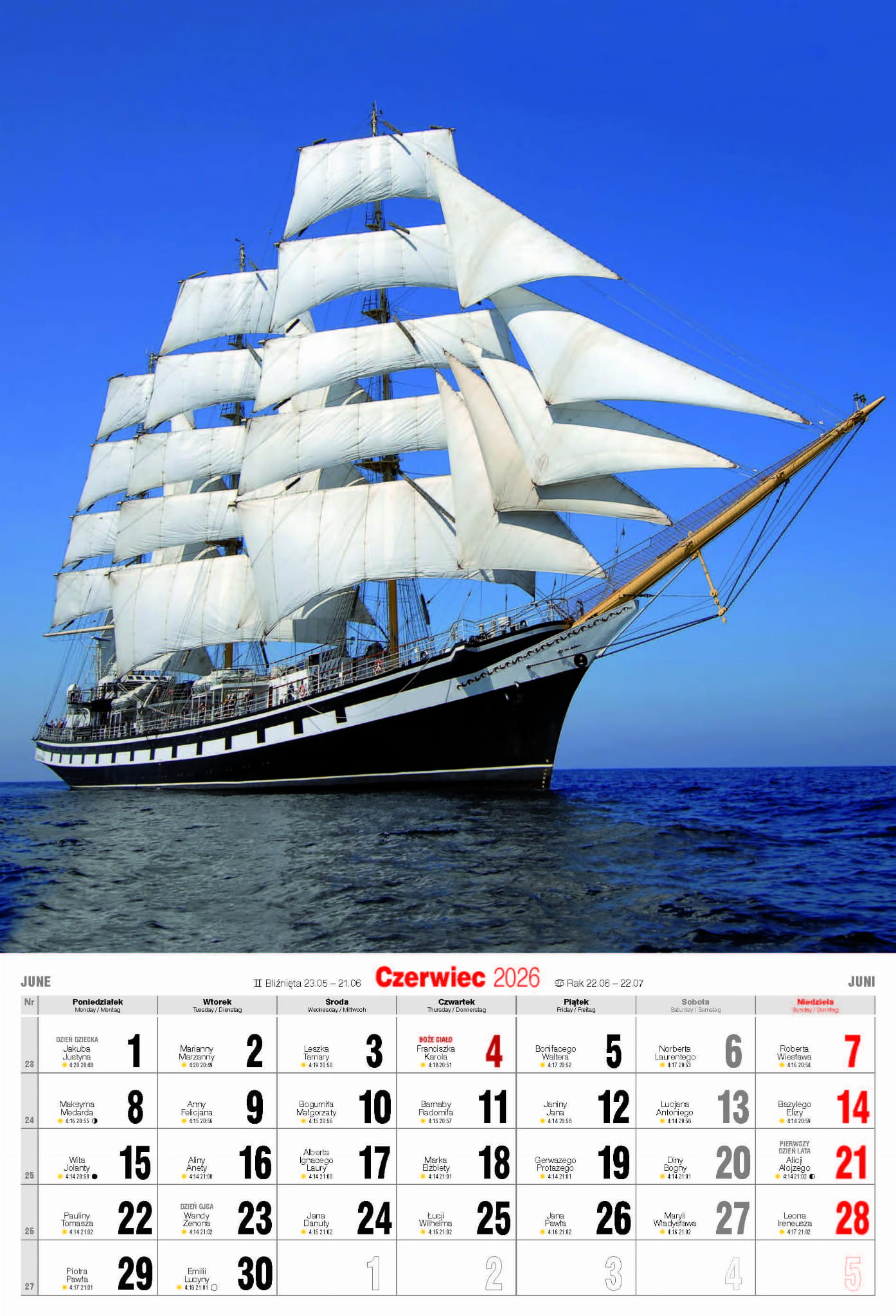 Duży kalendarz ścienny, drukowany na grubym papierze powlekanym.