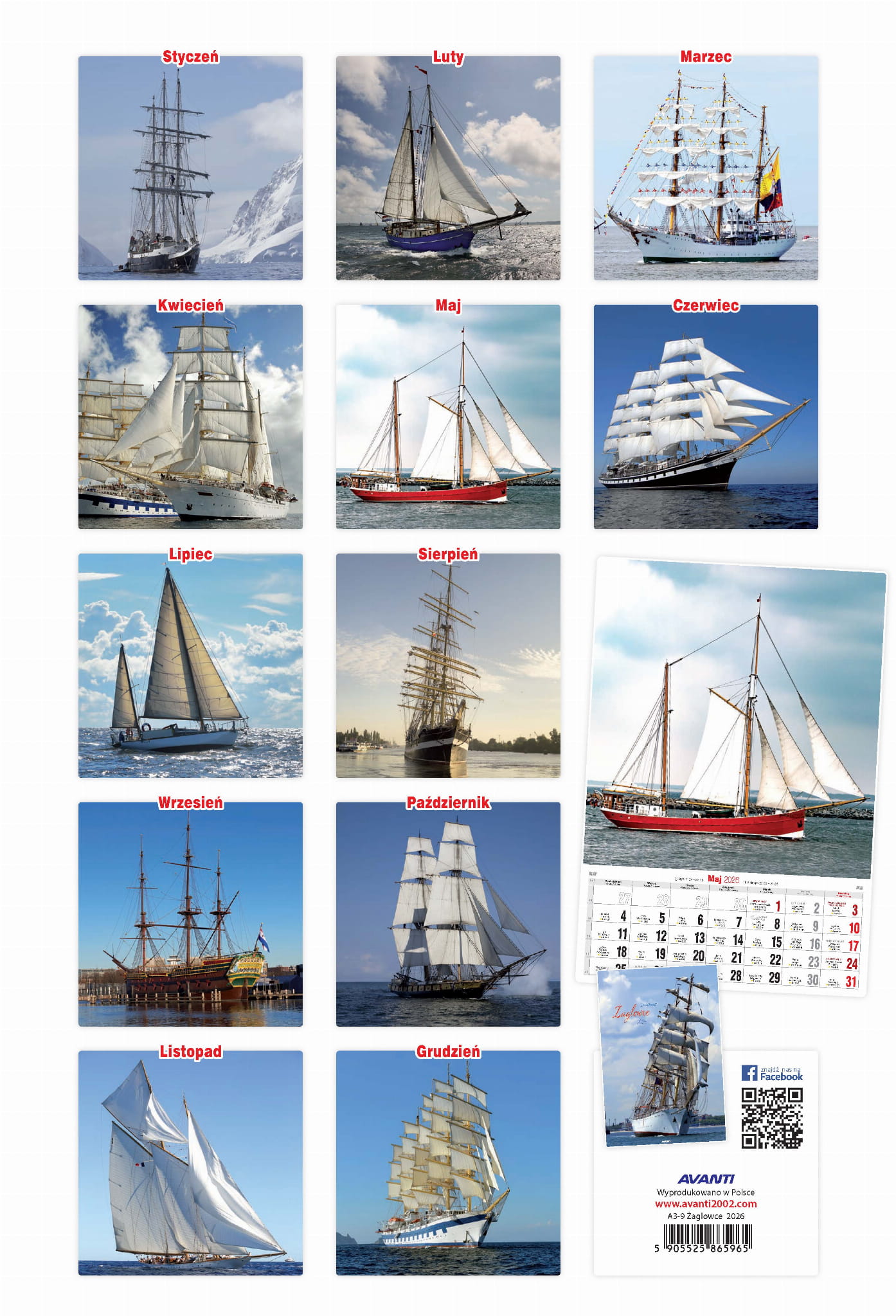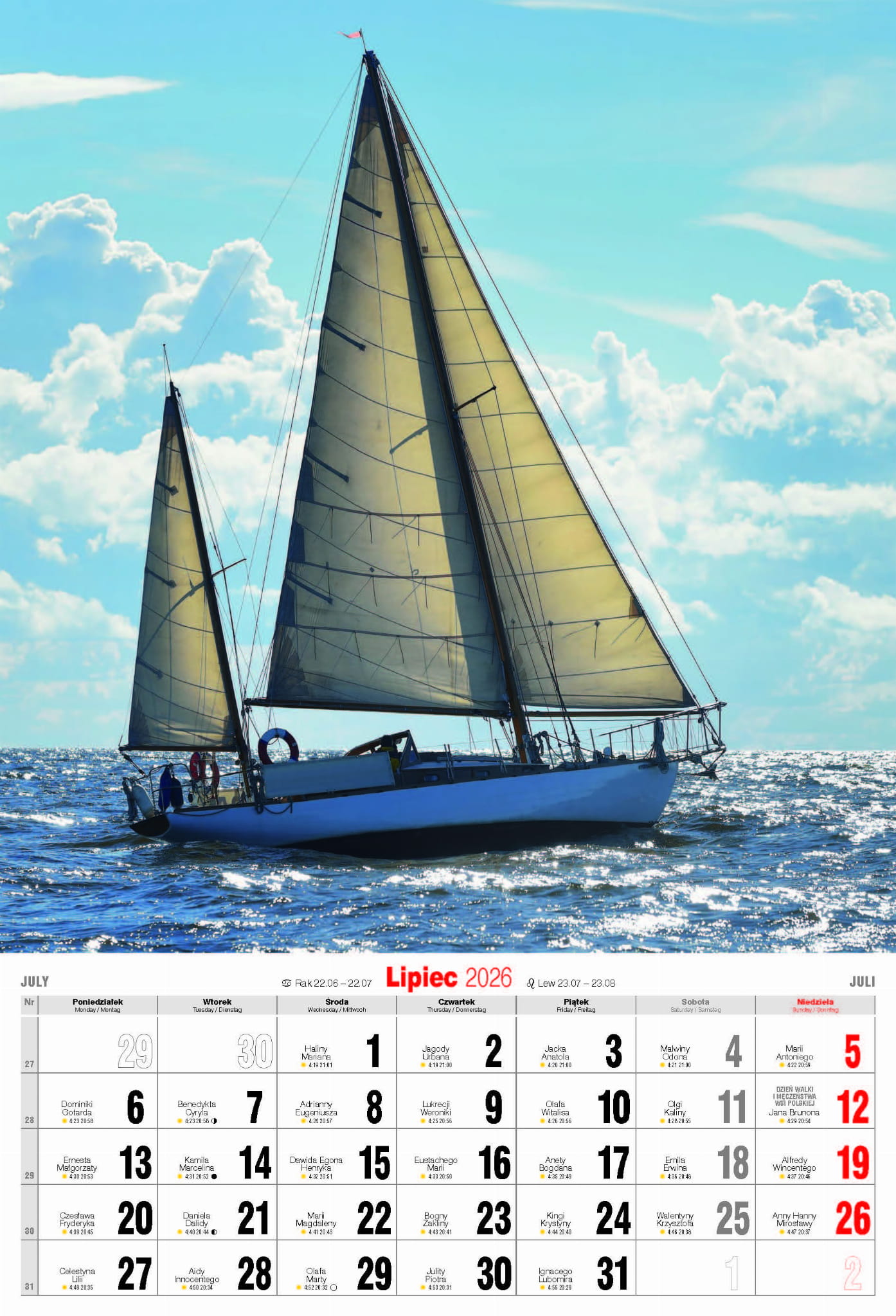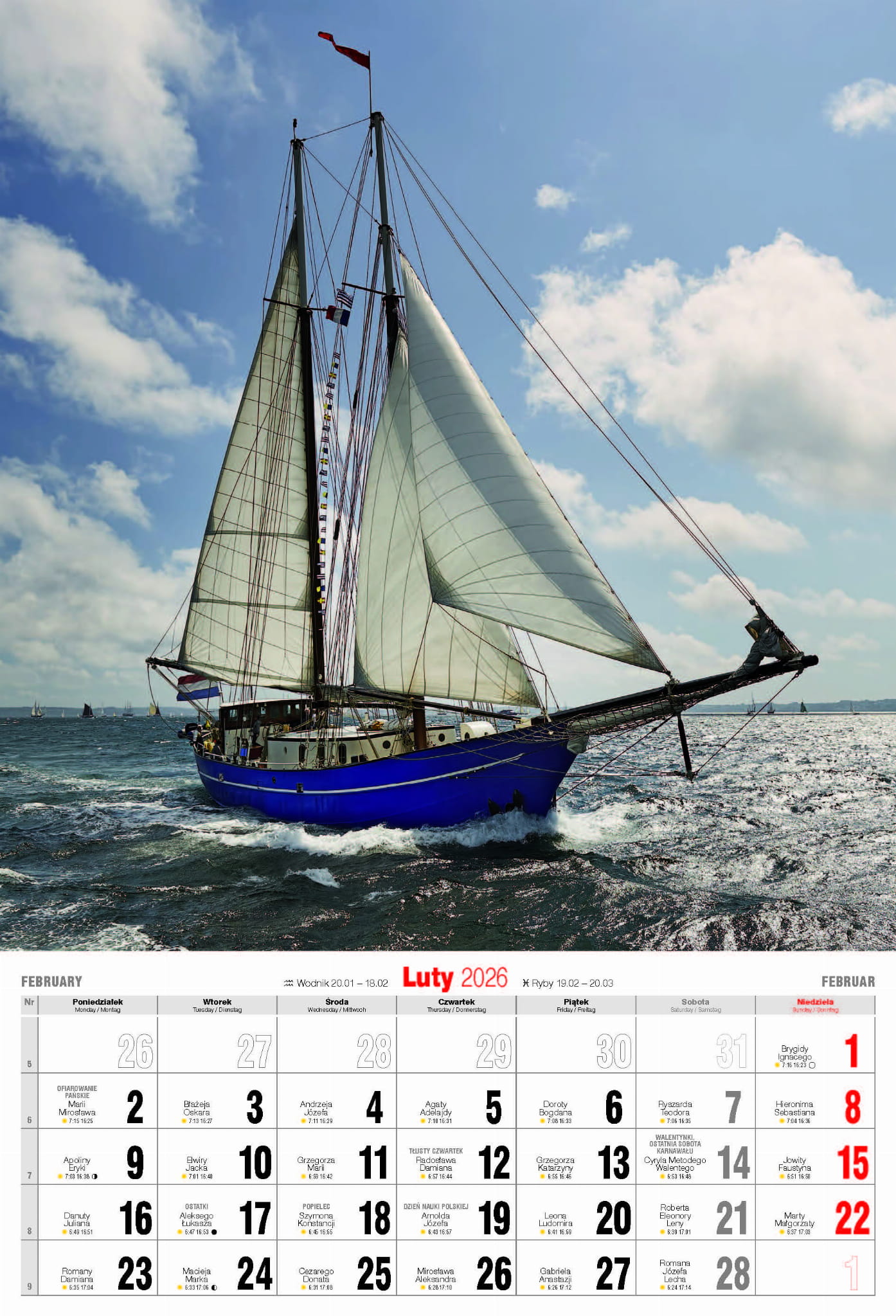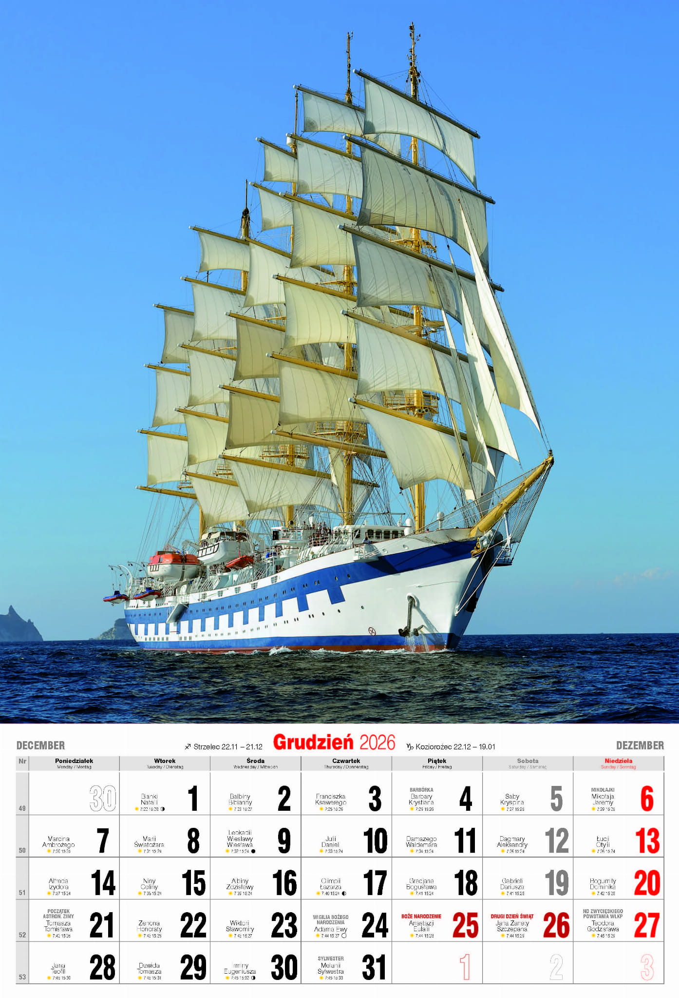 Duży kalendarz ścienny, drukowany na grubym papierze powlekanym.