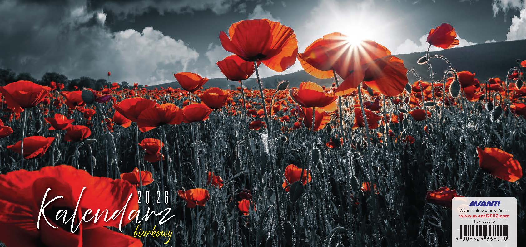 Wygodny, poziomy kalendarz biurkowy, niepowlekany papier ułatwia notowanie.