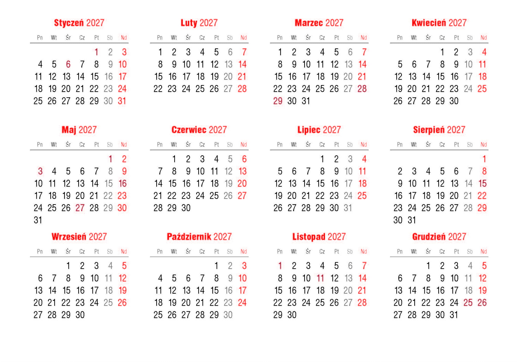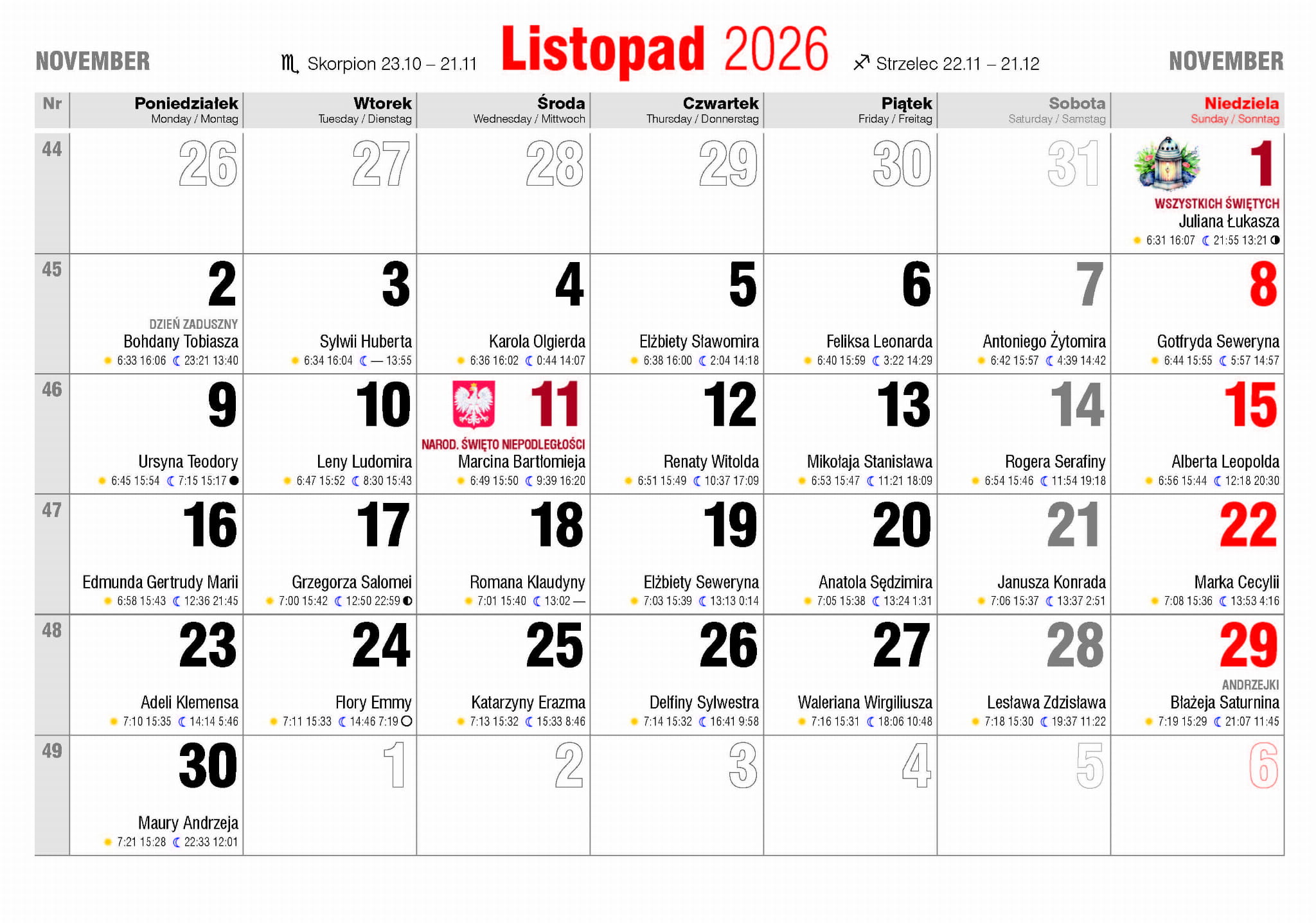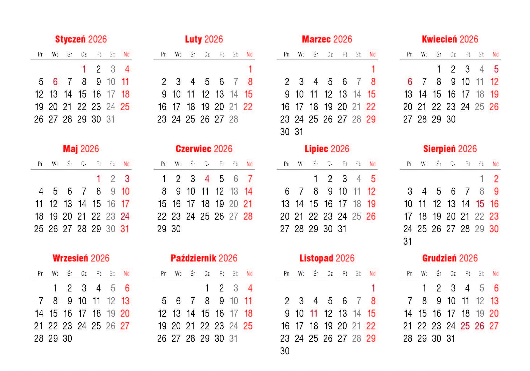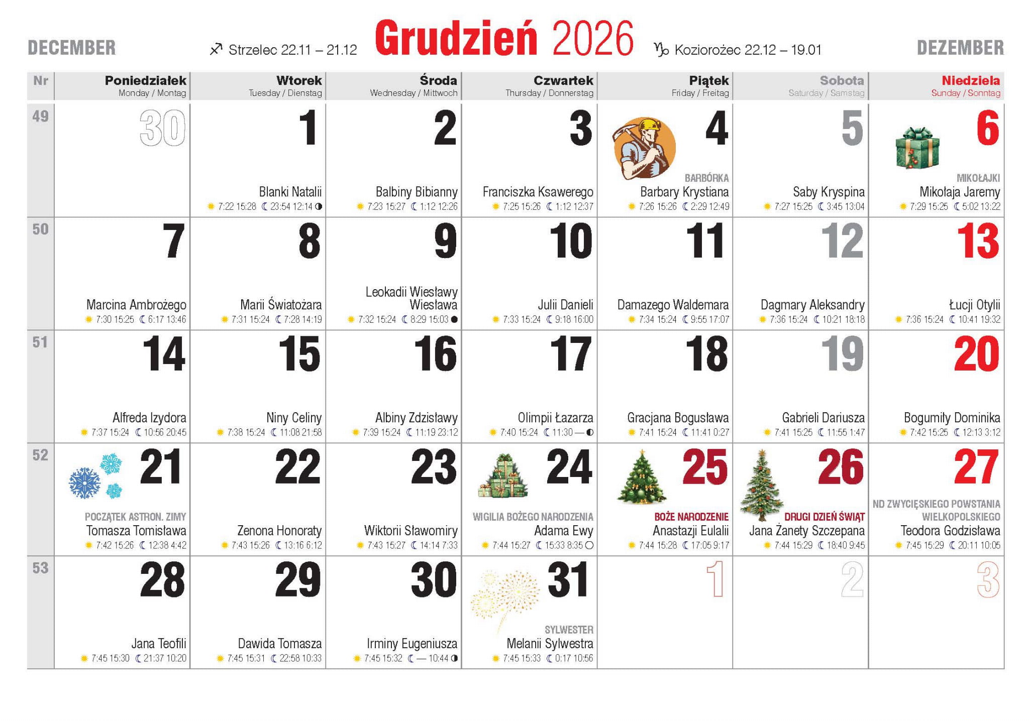 - skrócone kalendaria na rok bieżący i kolejny na dodatkowych stronach