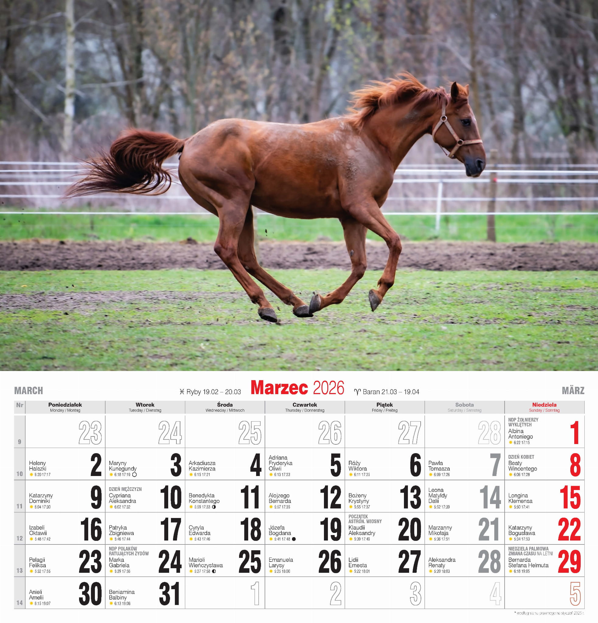 Duży, solidny kalendarz ścienny, drukowany na papierze kredowym.