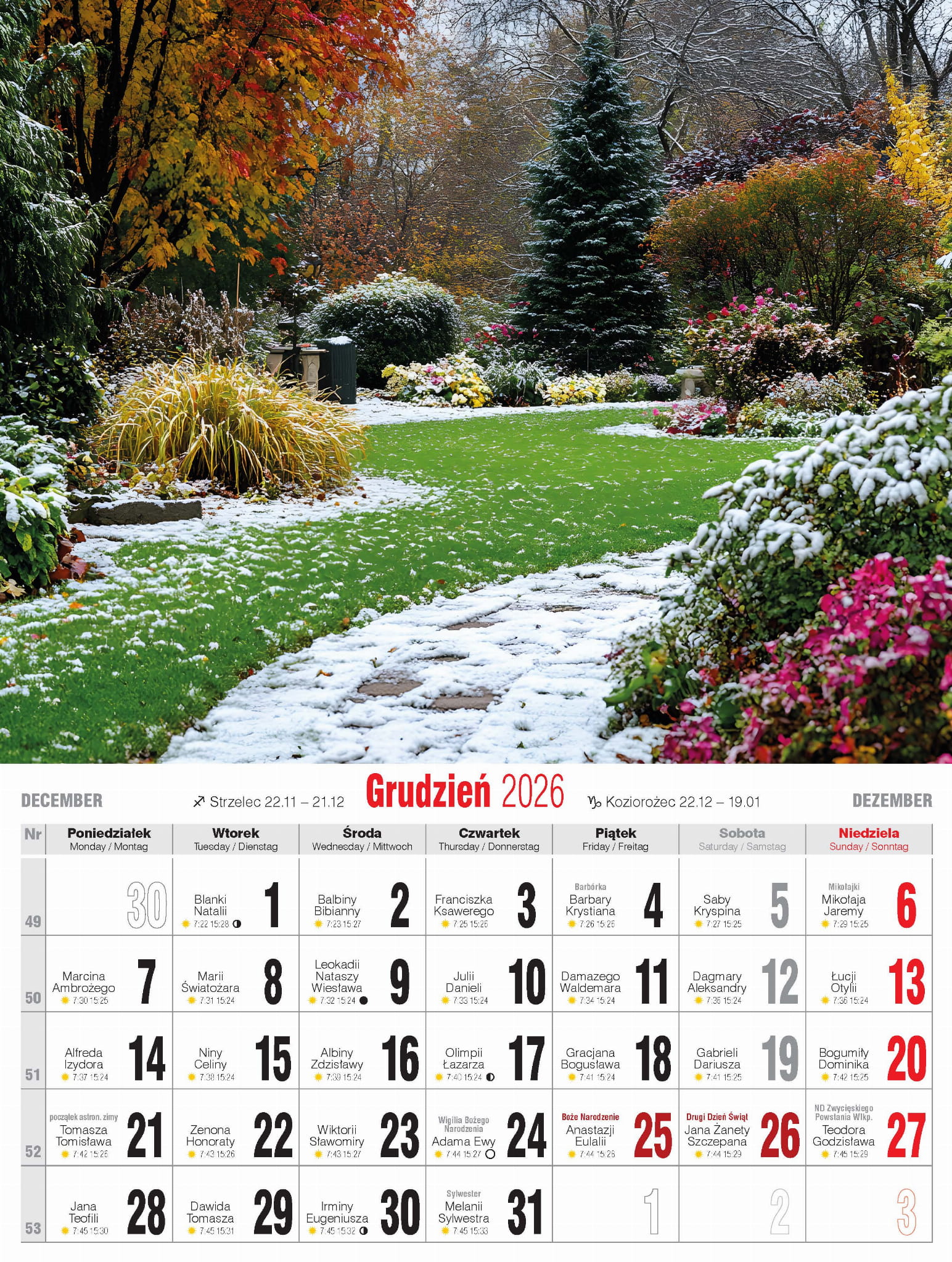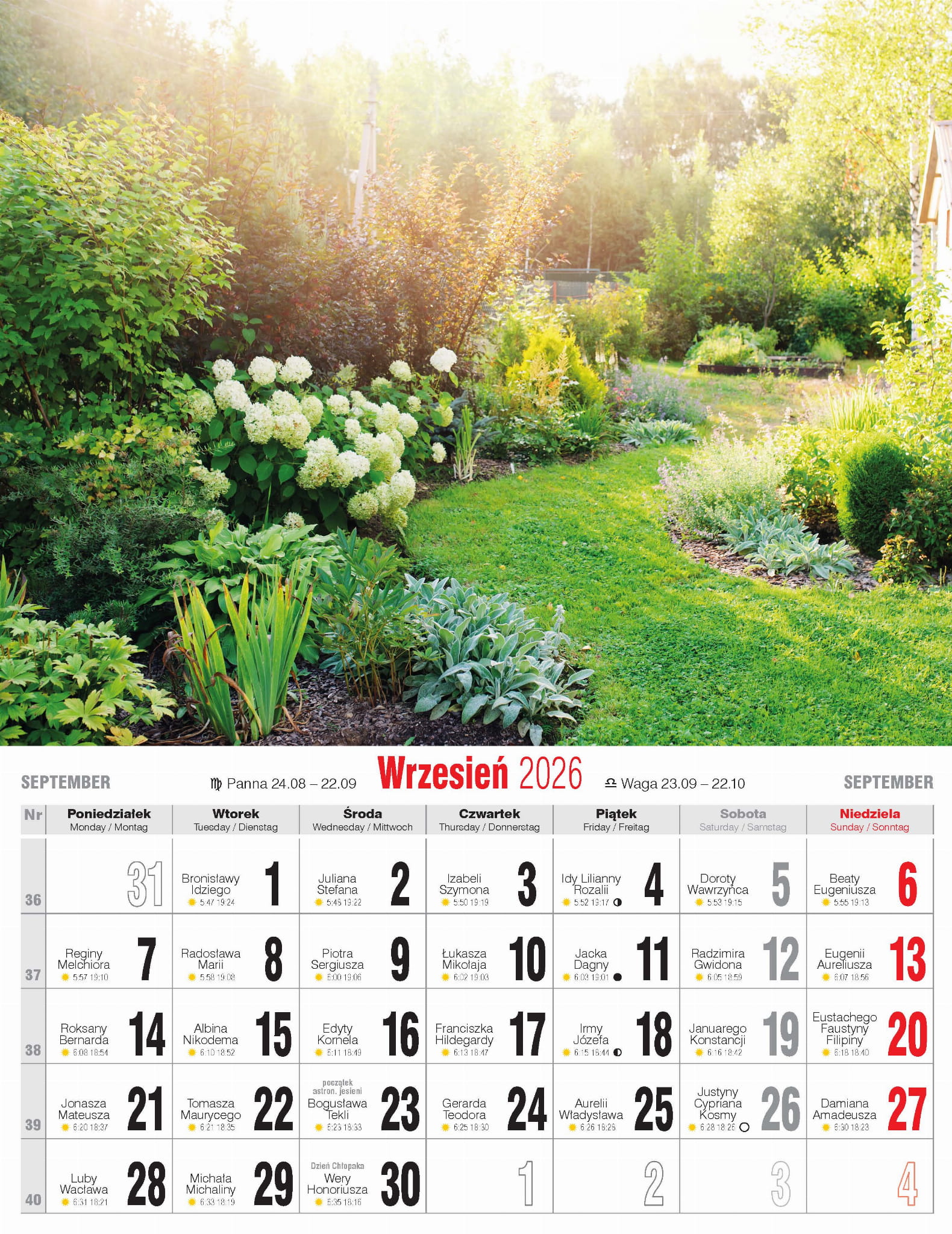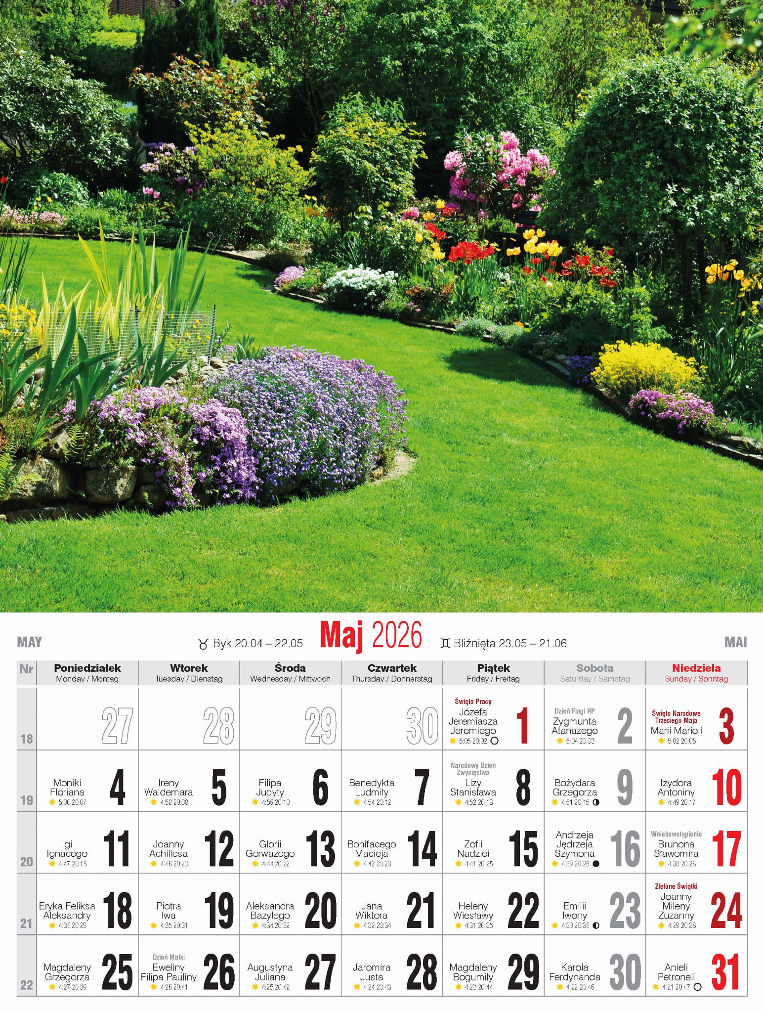 Wygodny, niewielki kalendarz ścienny, drukowany na papierze kredowym w oprawie spiralnej.