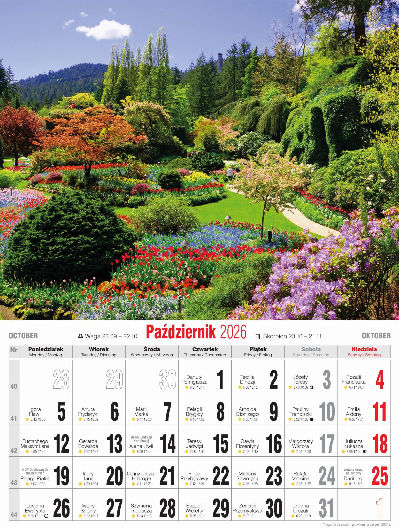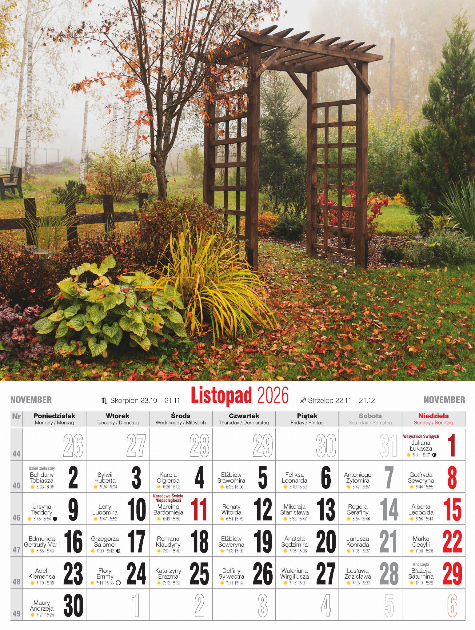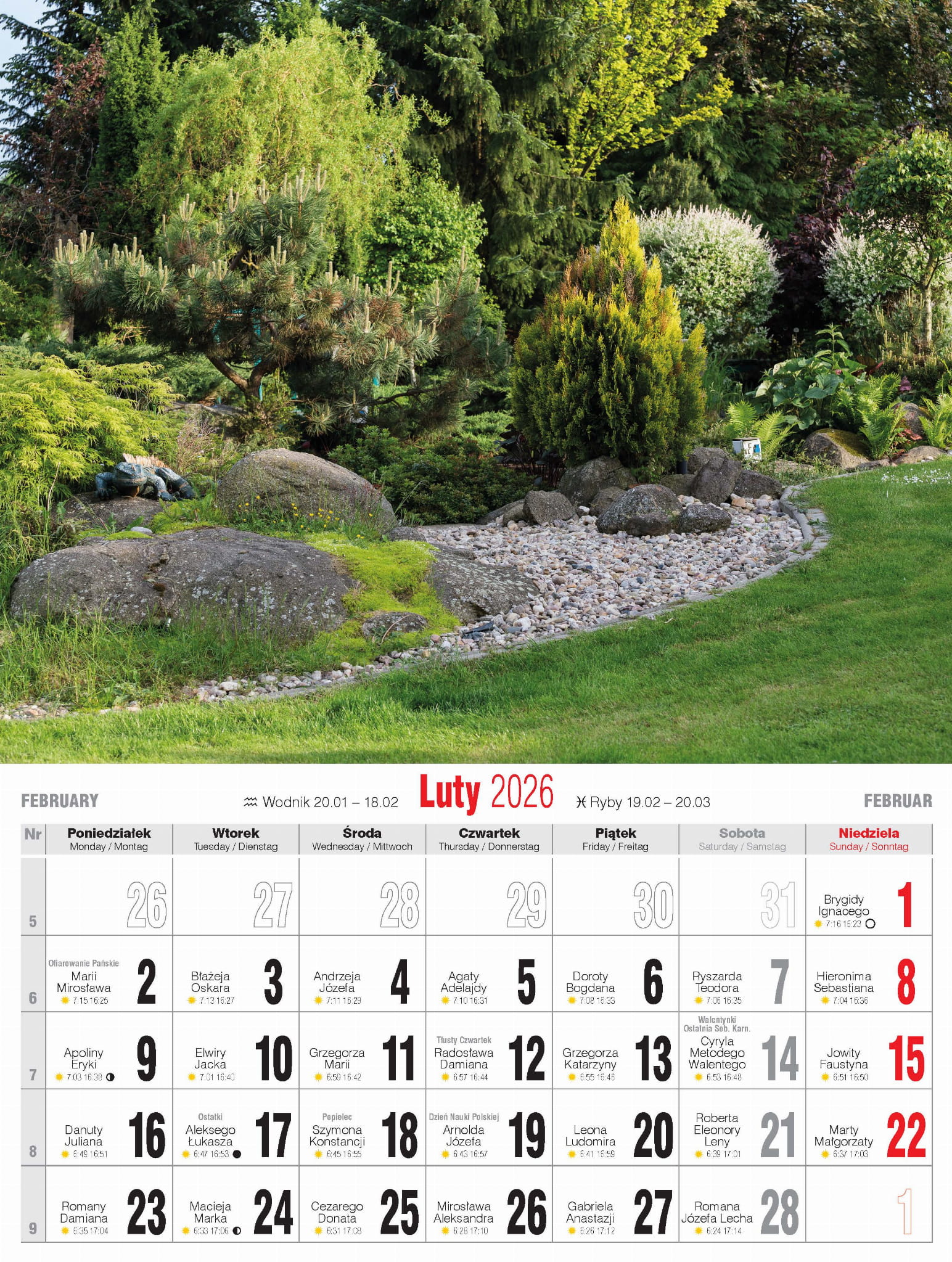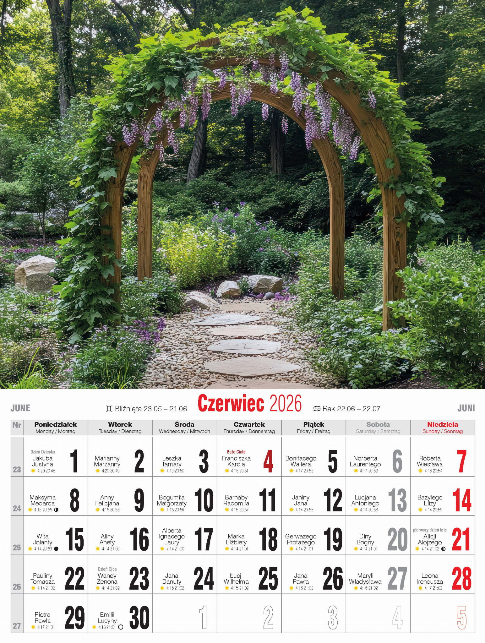 Wygodny, niewielki kalendarz ścienny, drukowany na papierze kredowym w oprawie spiralnej.