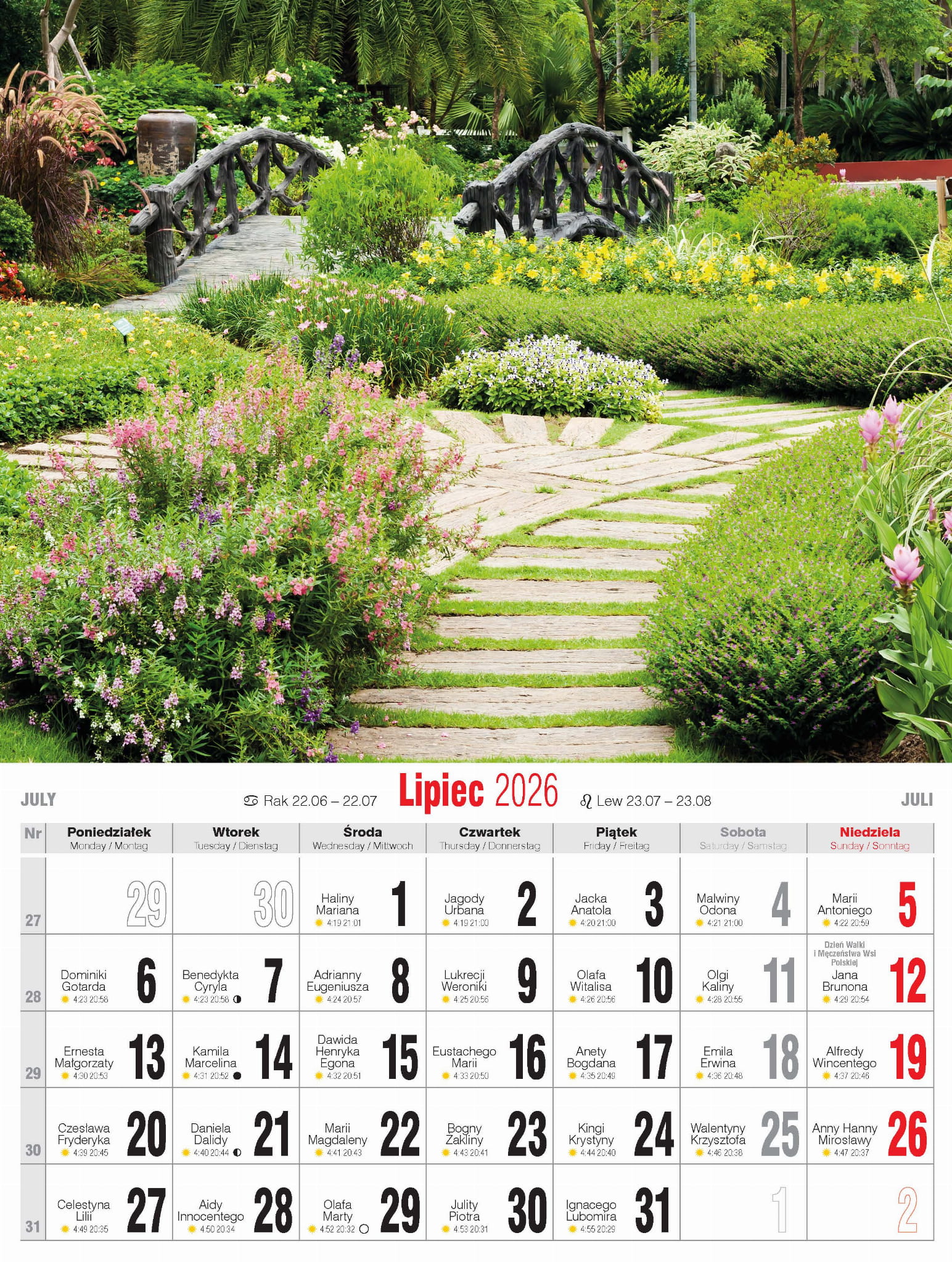 - nazwy miesięcy i dni tygodnia po polsku, angielsku i niemiecku
