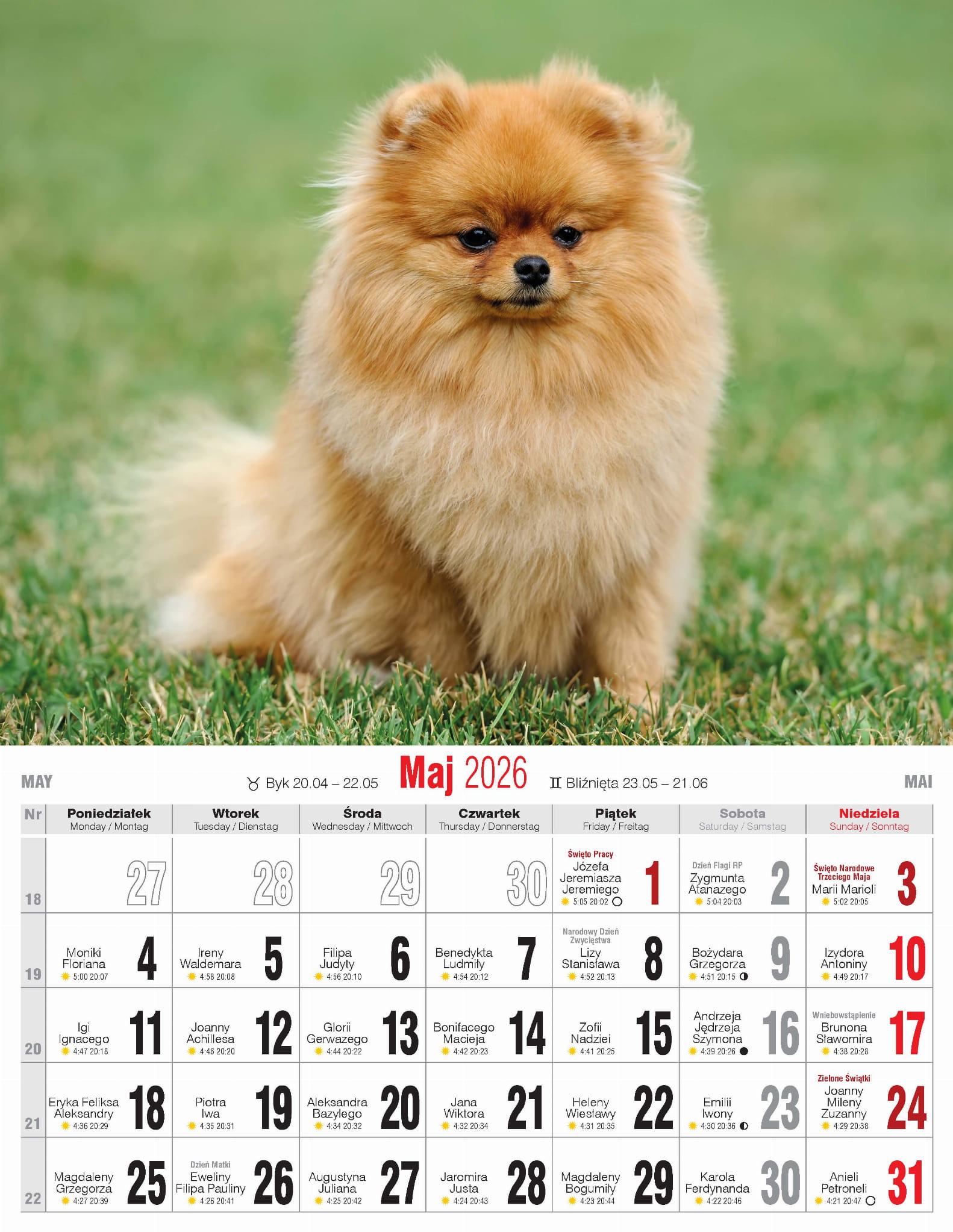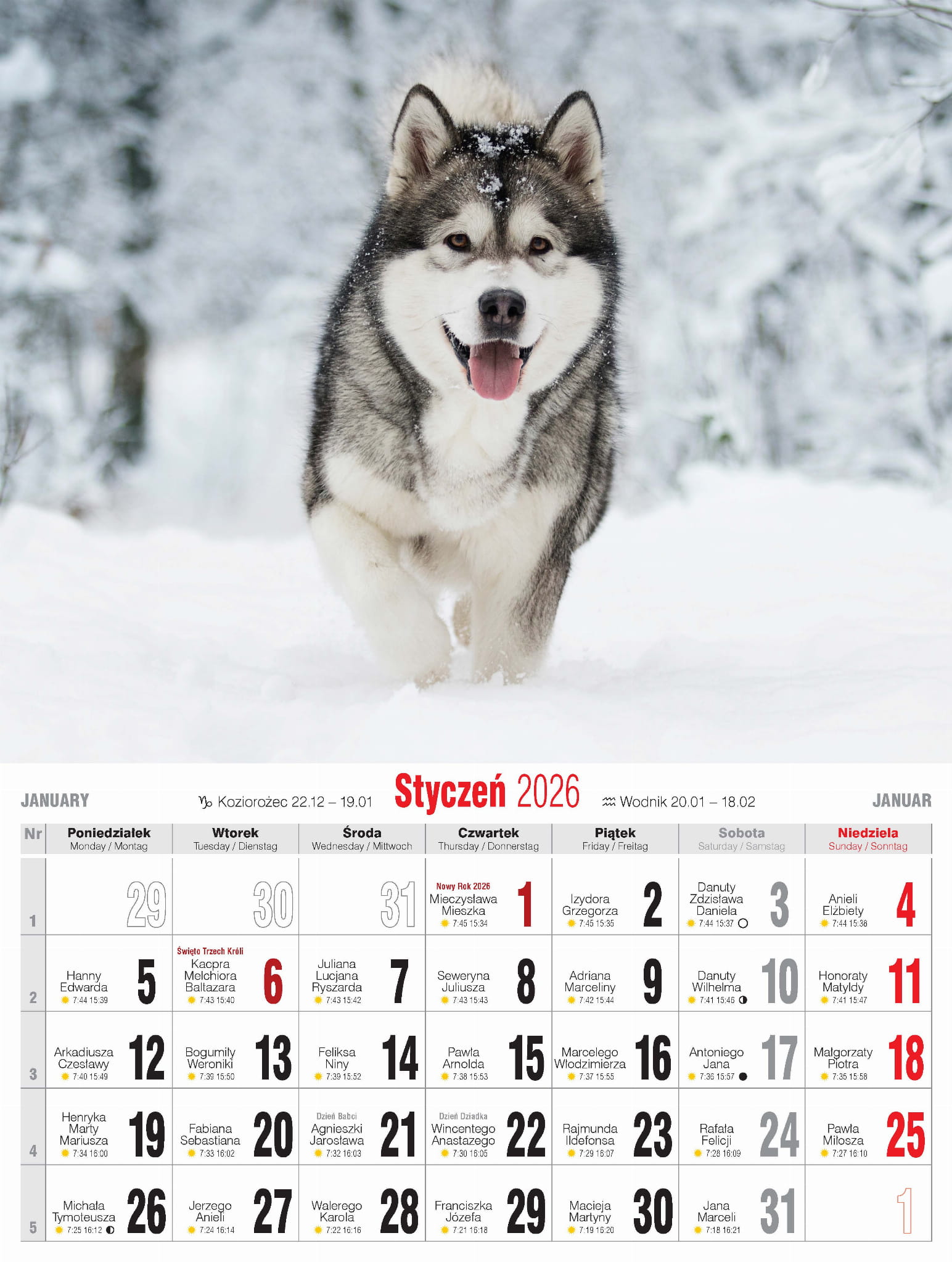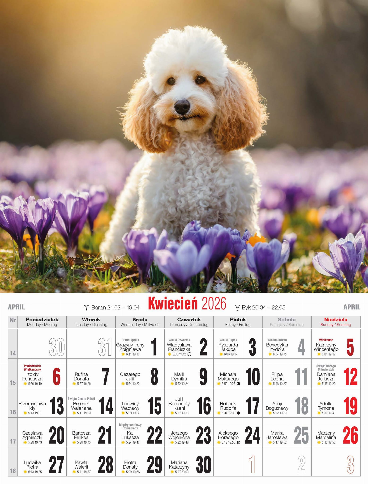 Wygodny, niewielki kalendarz ścienny, drukowany na papierze kredowym w oprawie spiralnej.
