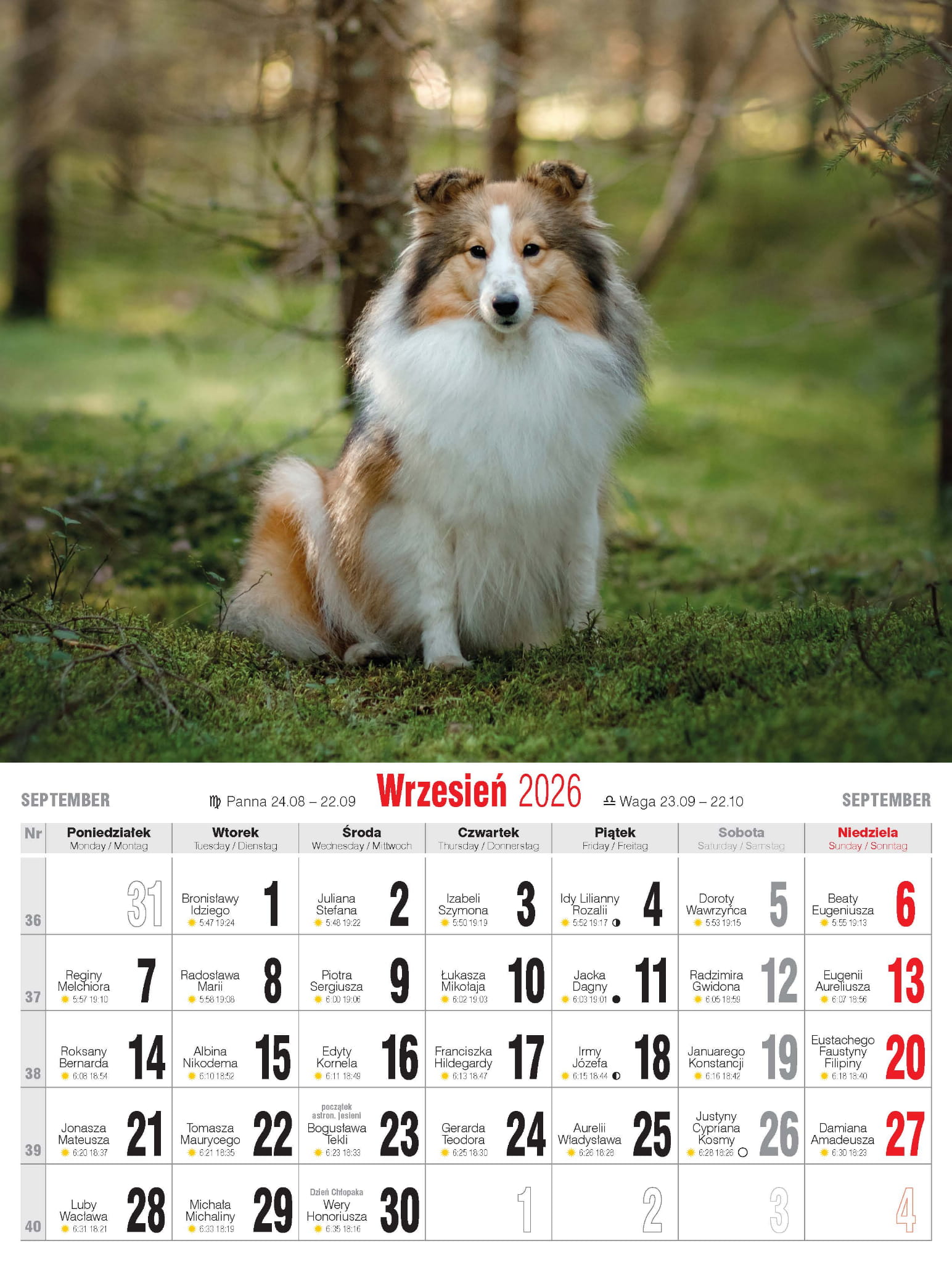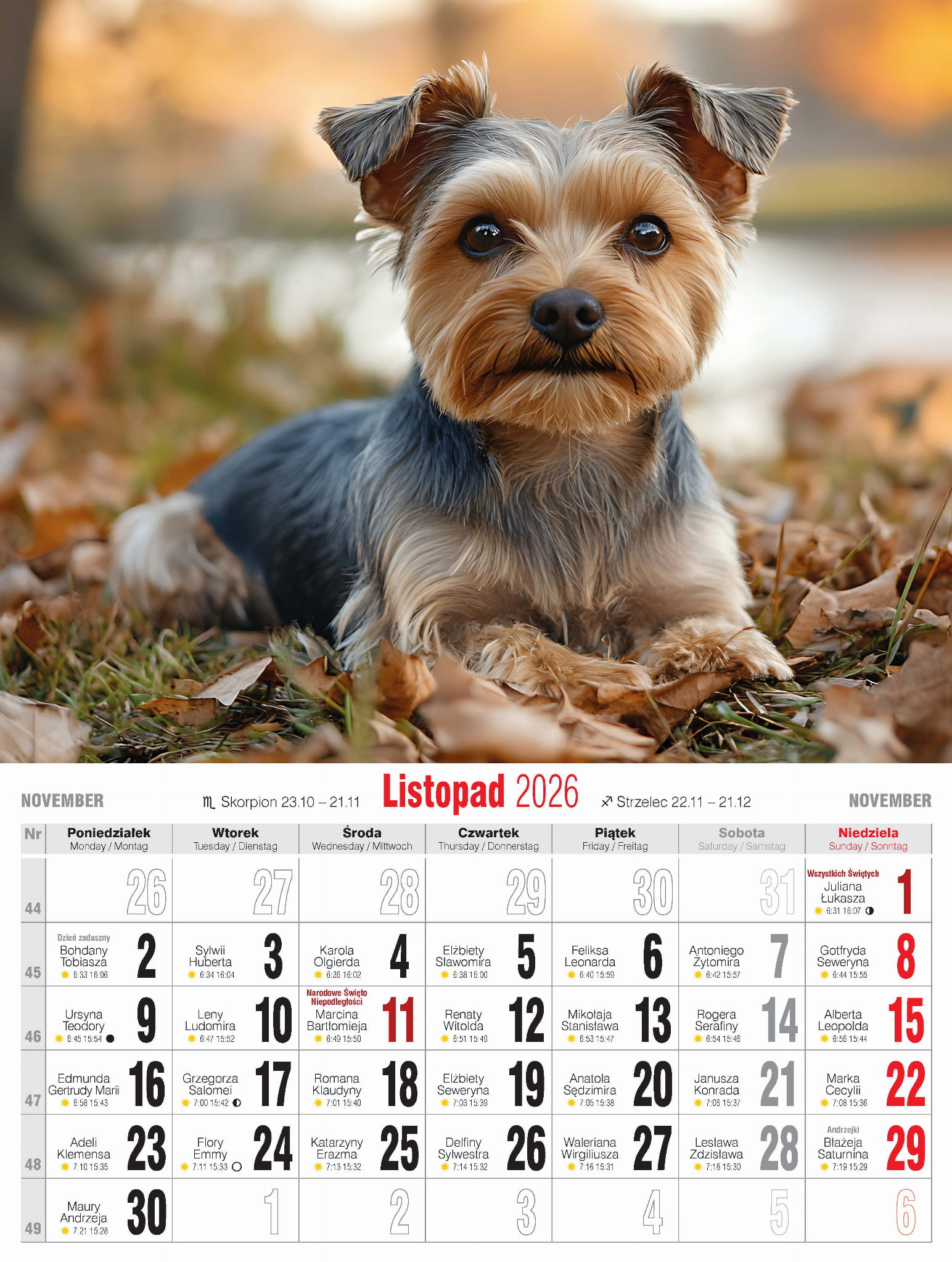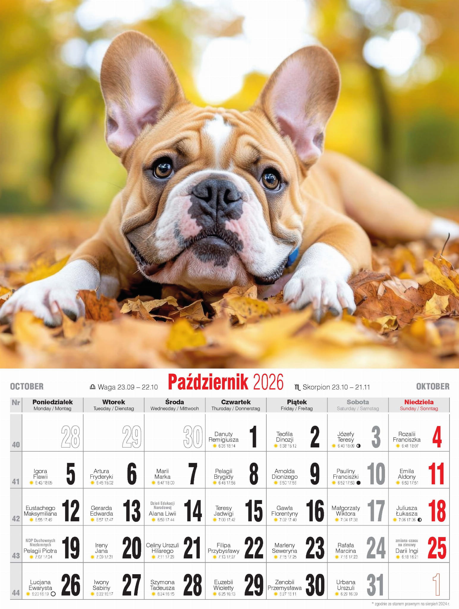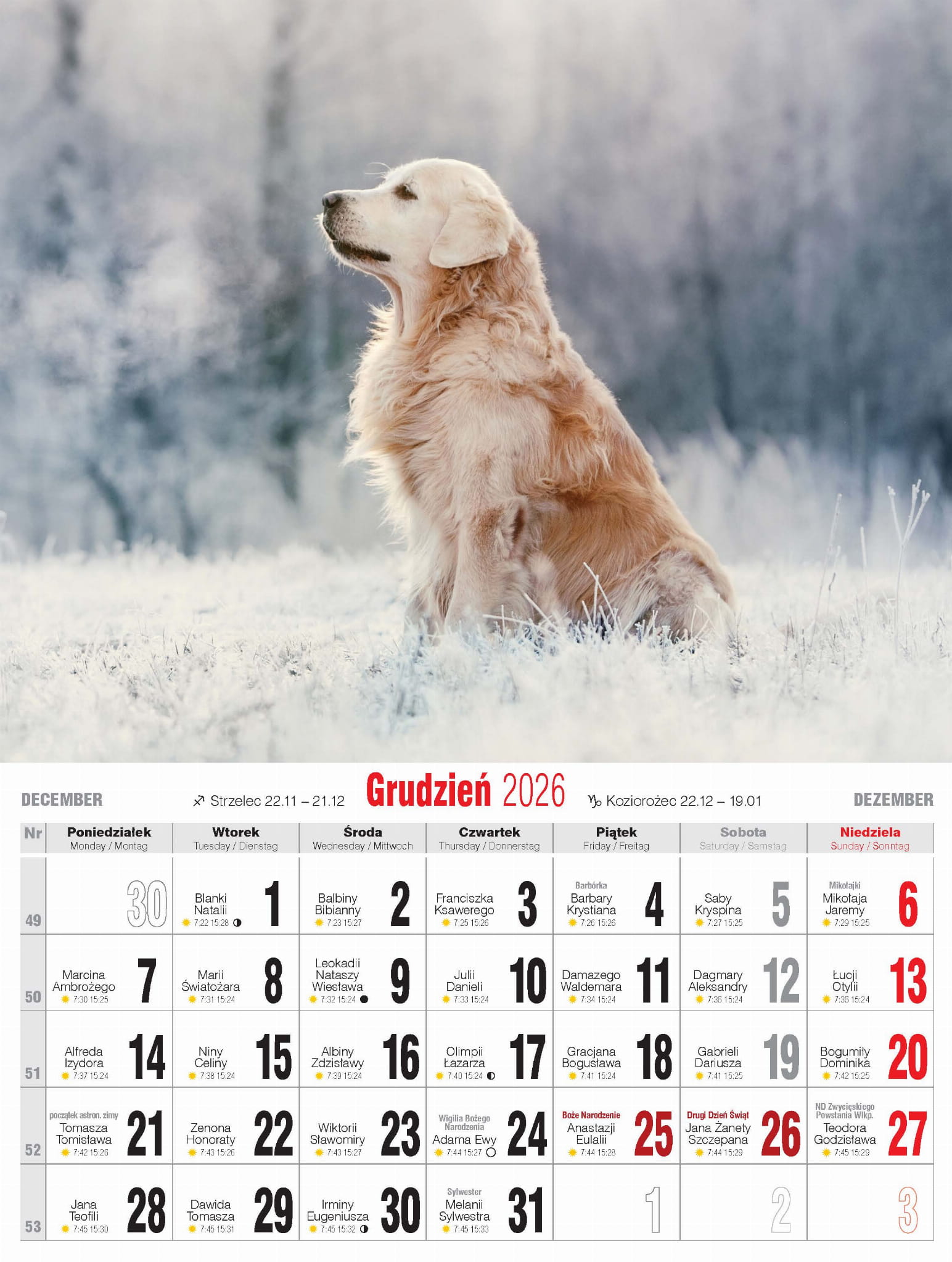 Wygodny, niewielki kalendarz ścienny, drukowany na papierze kredowym w oprawie spiralnej.