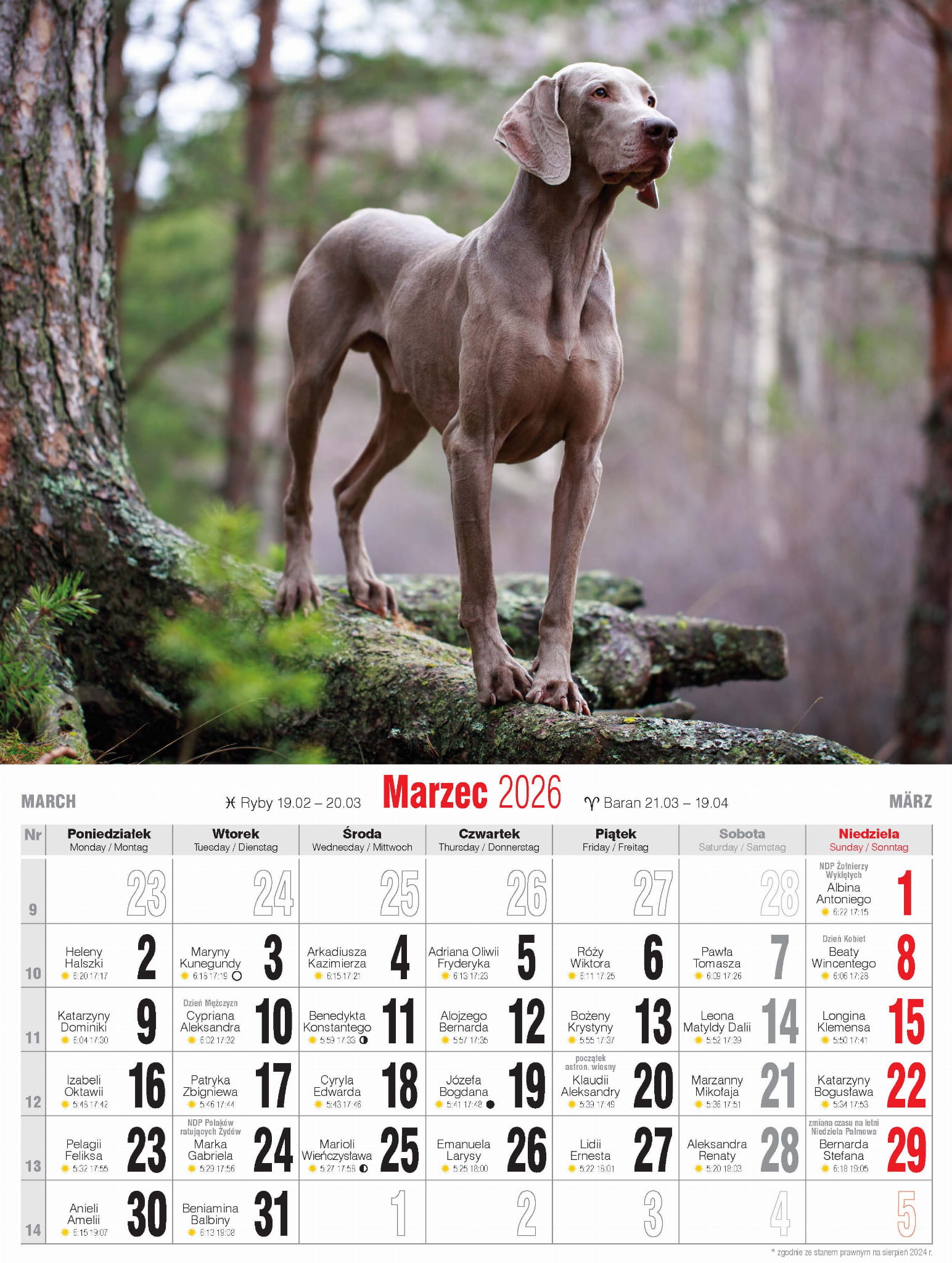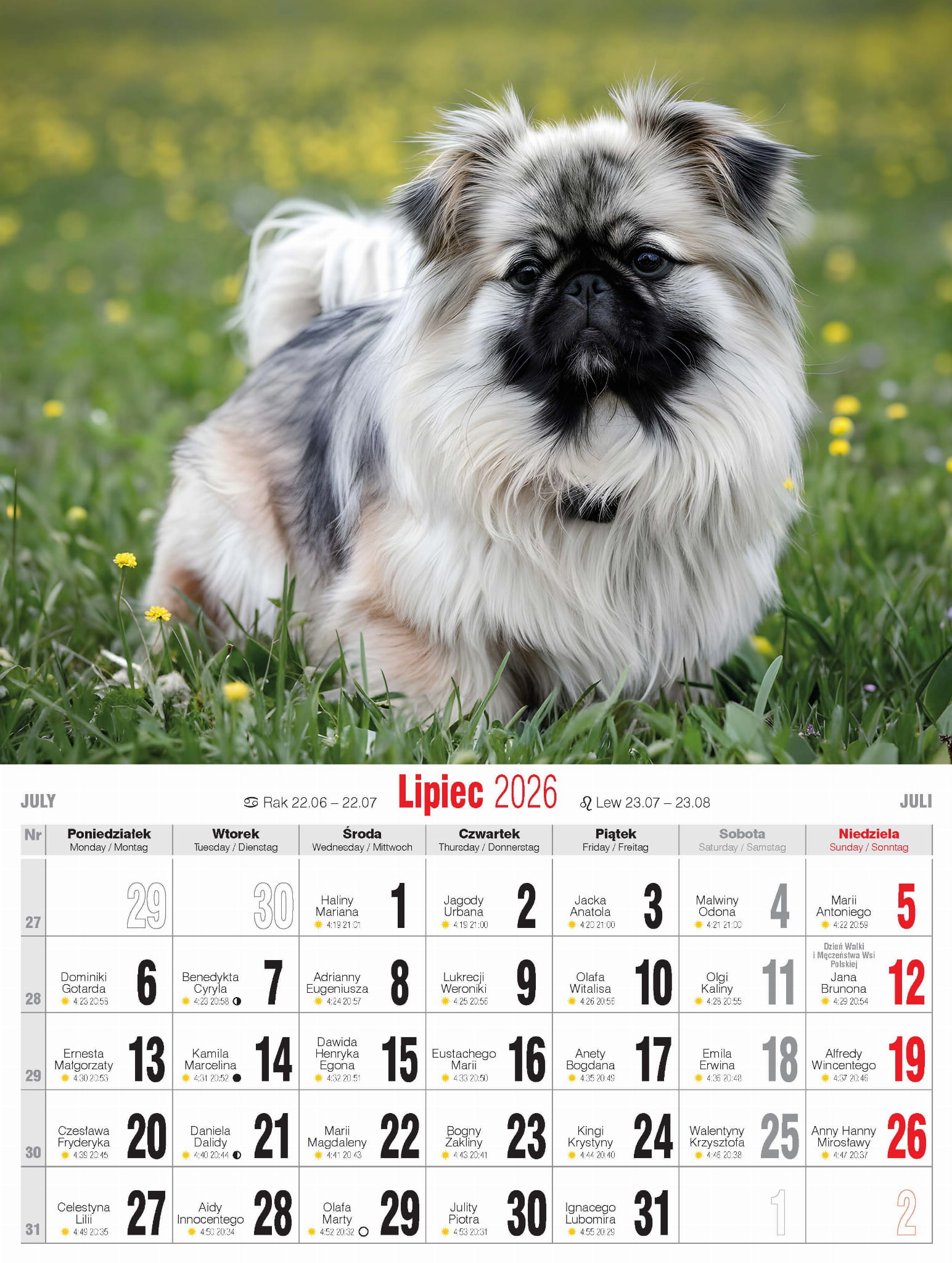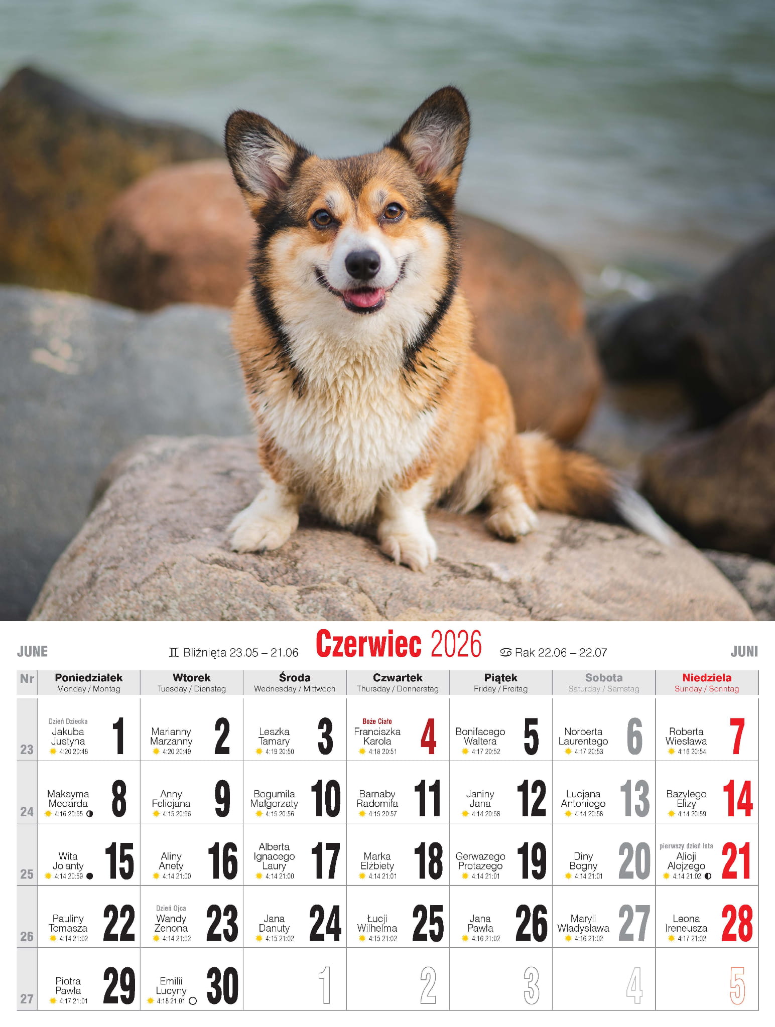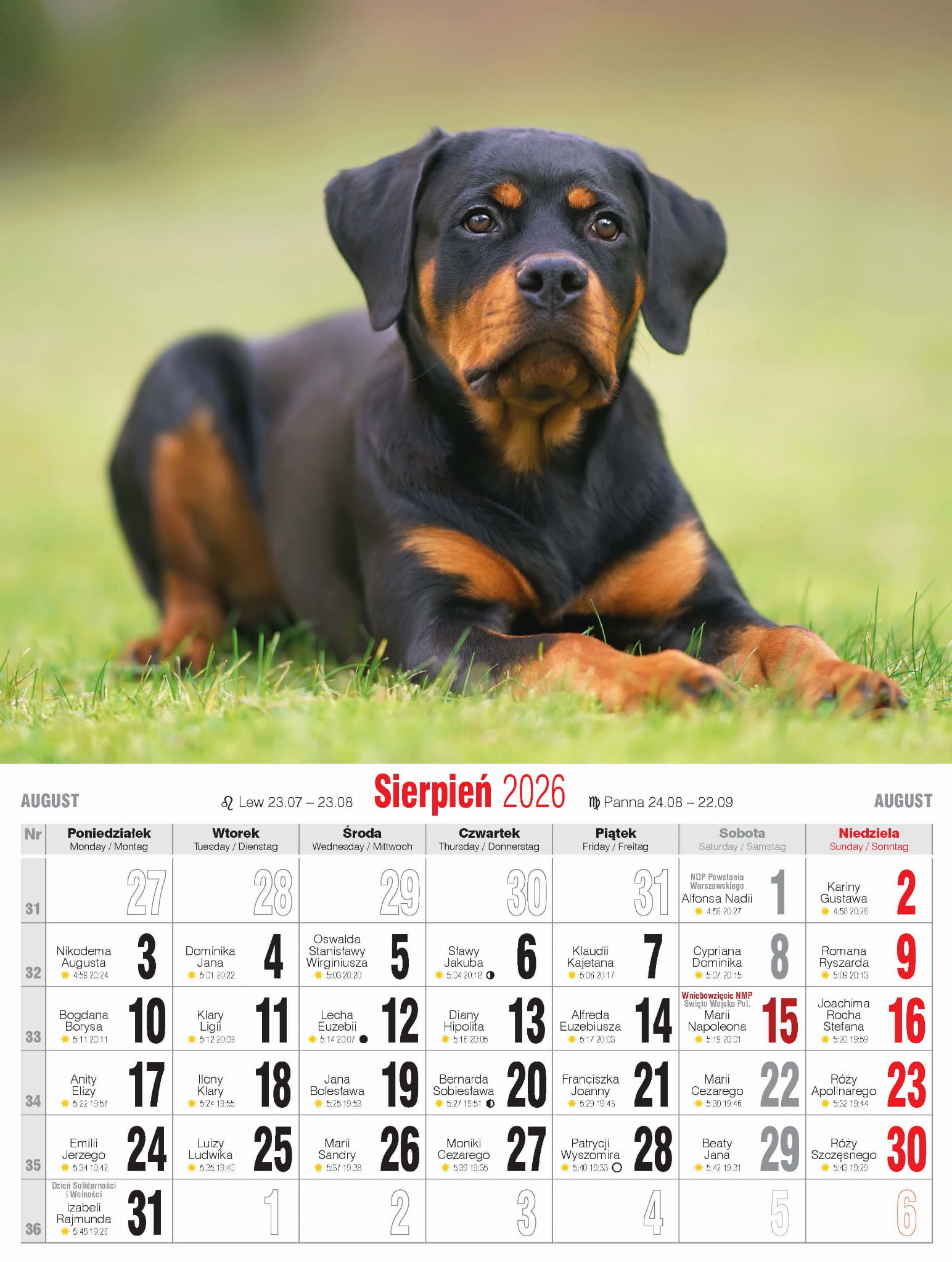 - nazwy miesięcy i dni tygodnia po polsku, angielsku i niemiecku