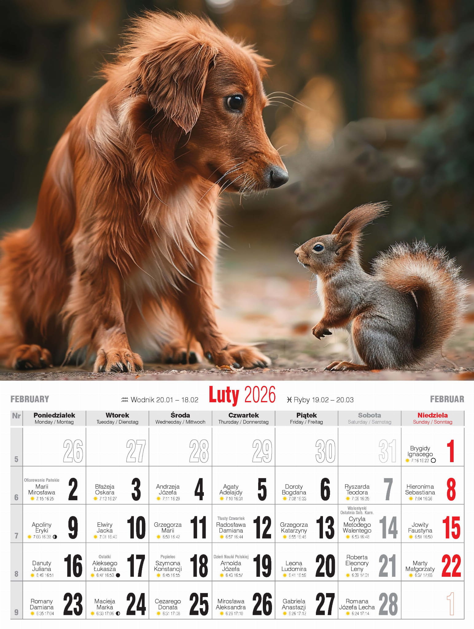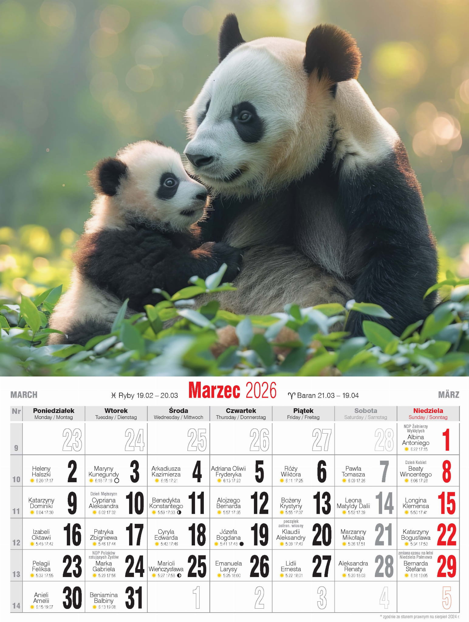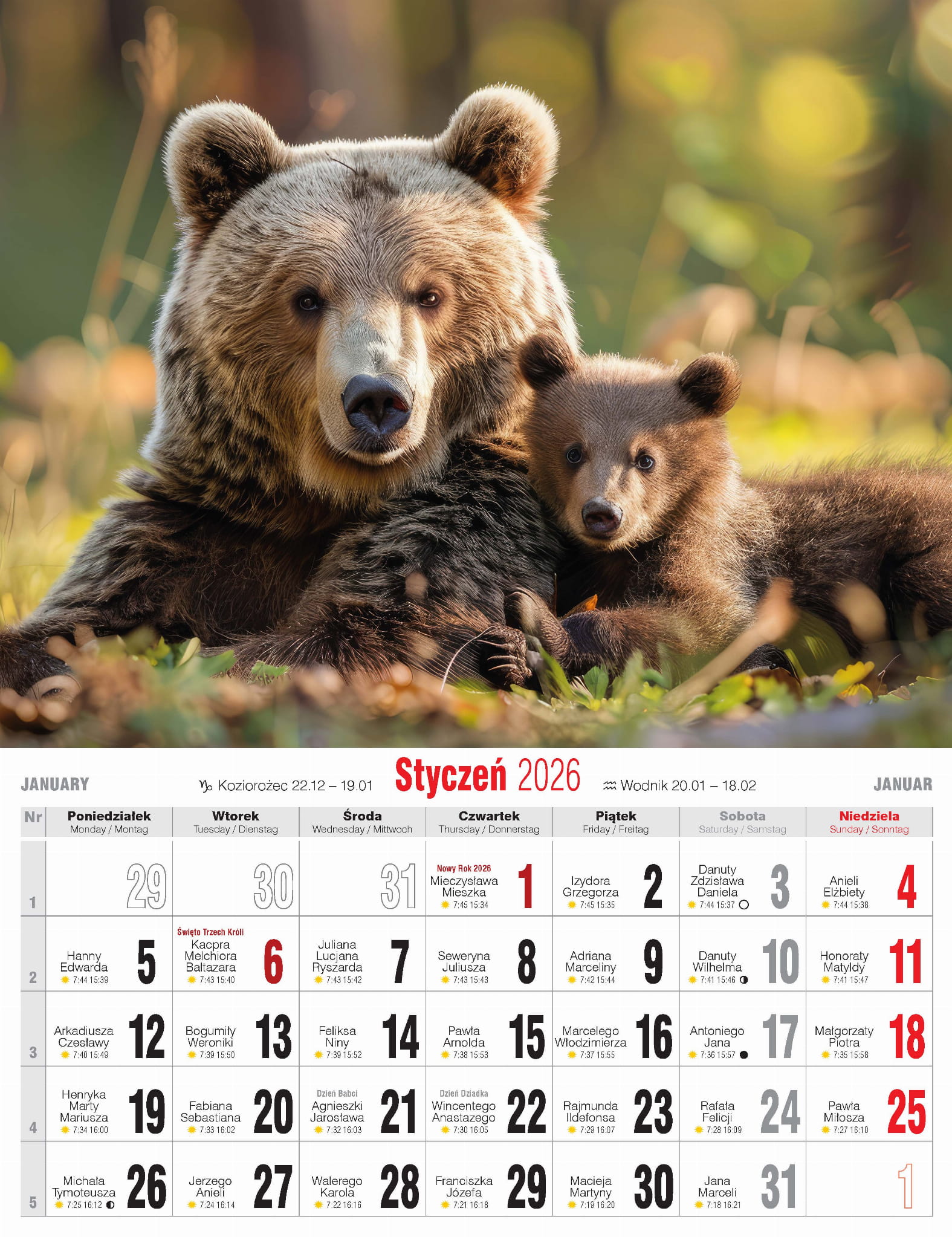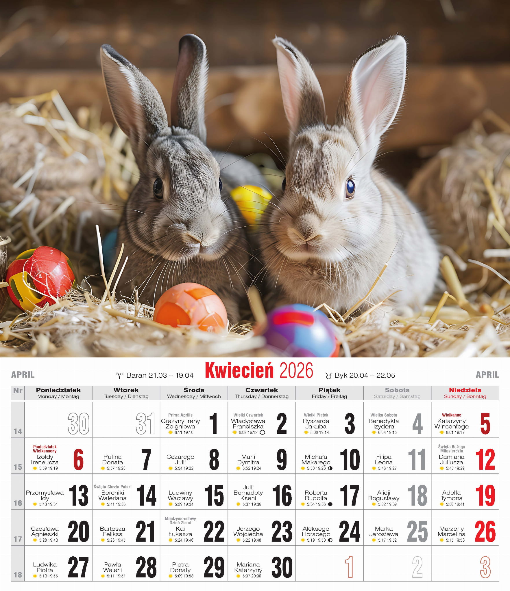 Wygodny, niewielki kalendarz ścienny, drukowany na papierze kredowym w oprawie spiralnej.