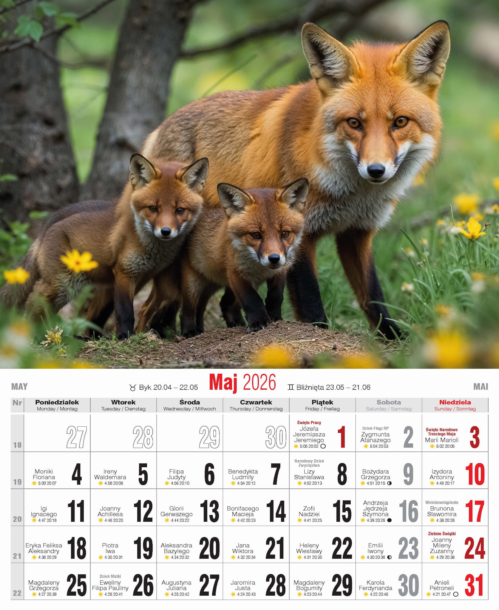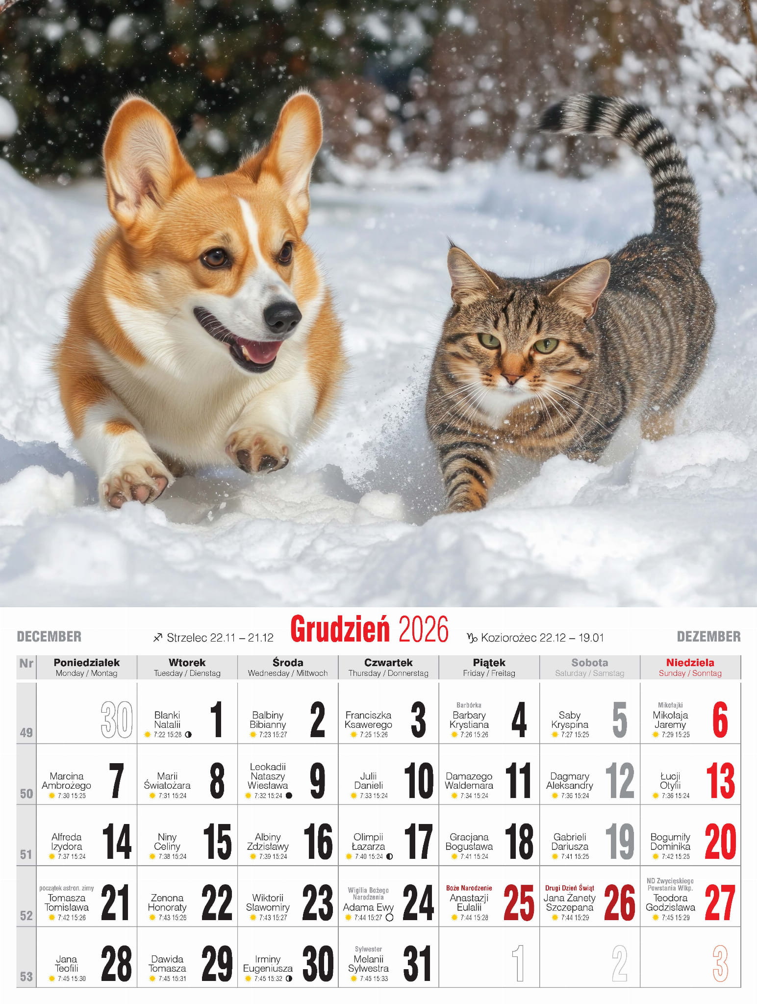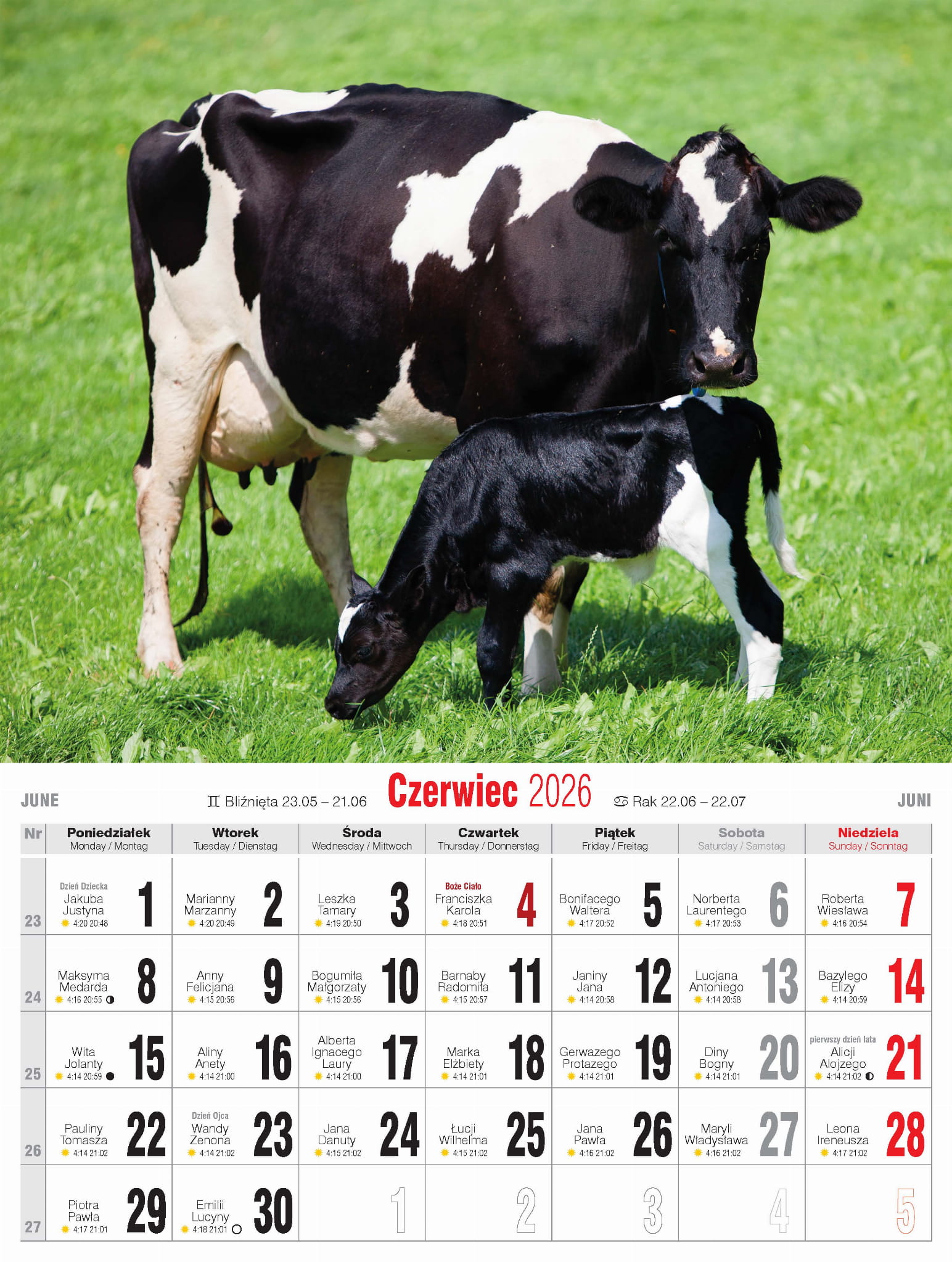 Wygodny, niewielki kalendarz ścienny, drukowany na papierze kredowym w oprawie spiralnej.
