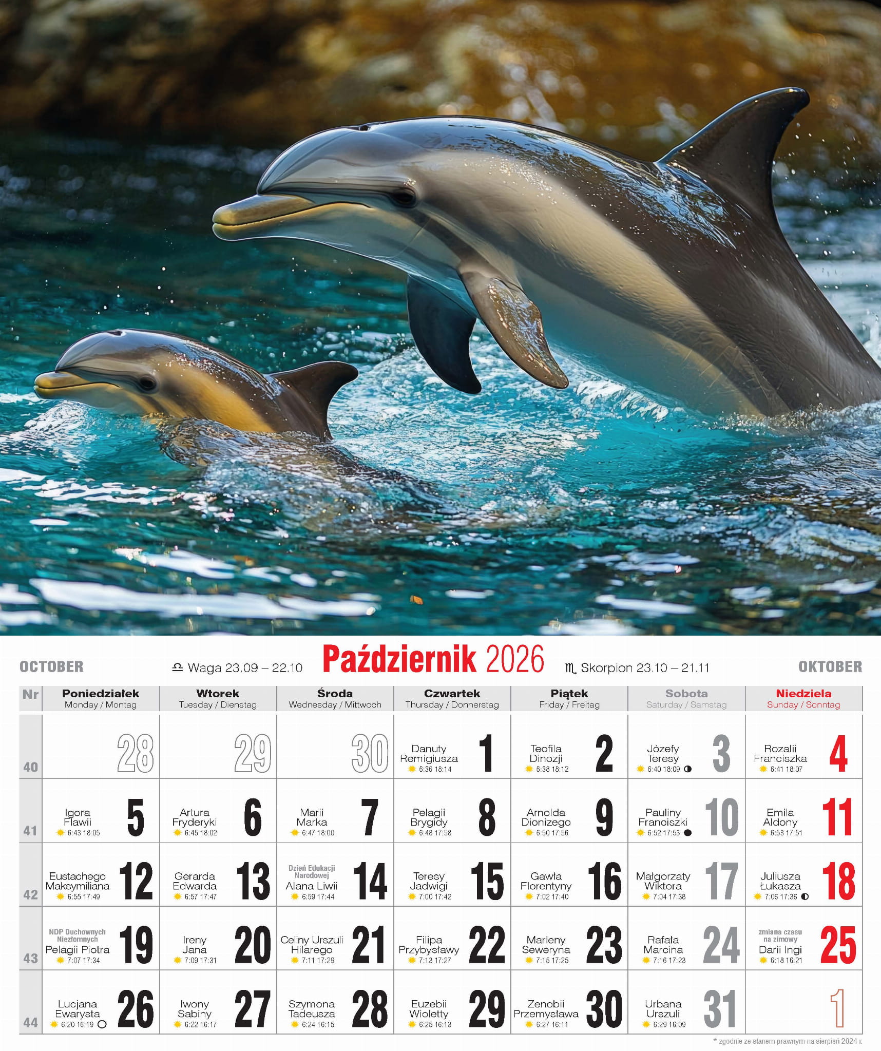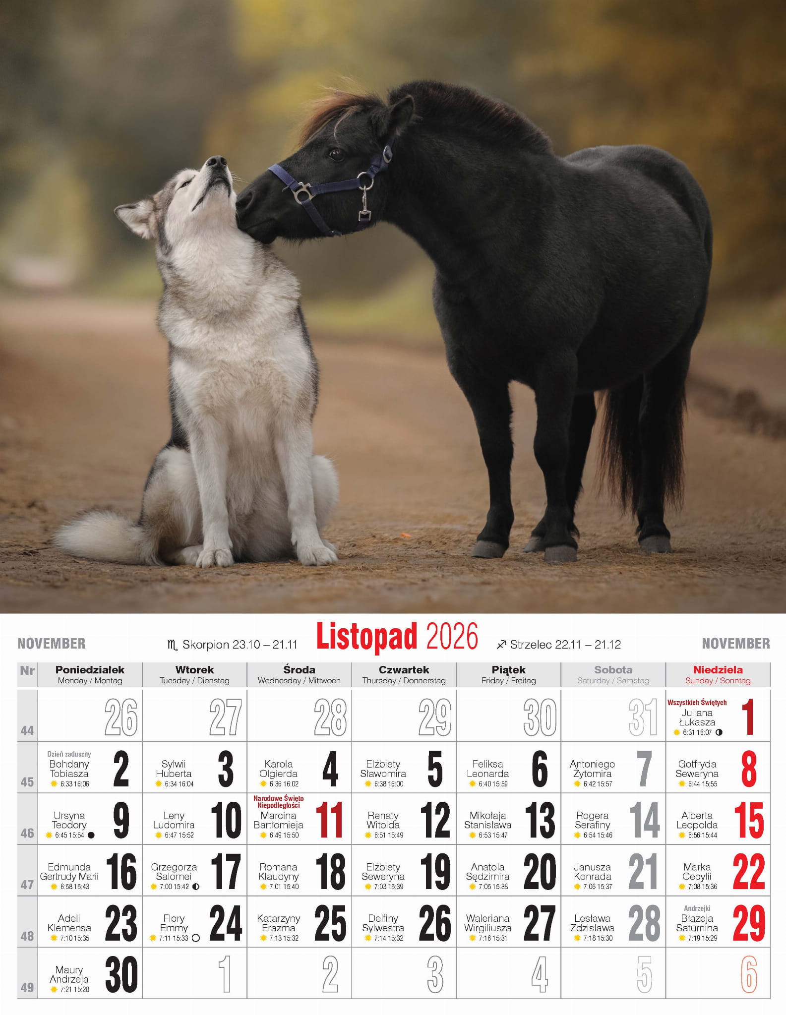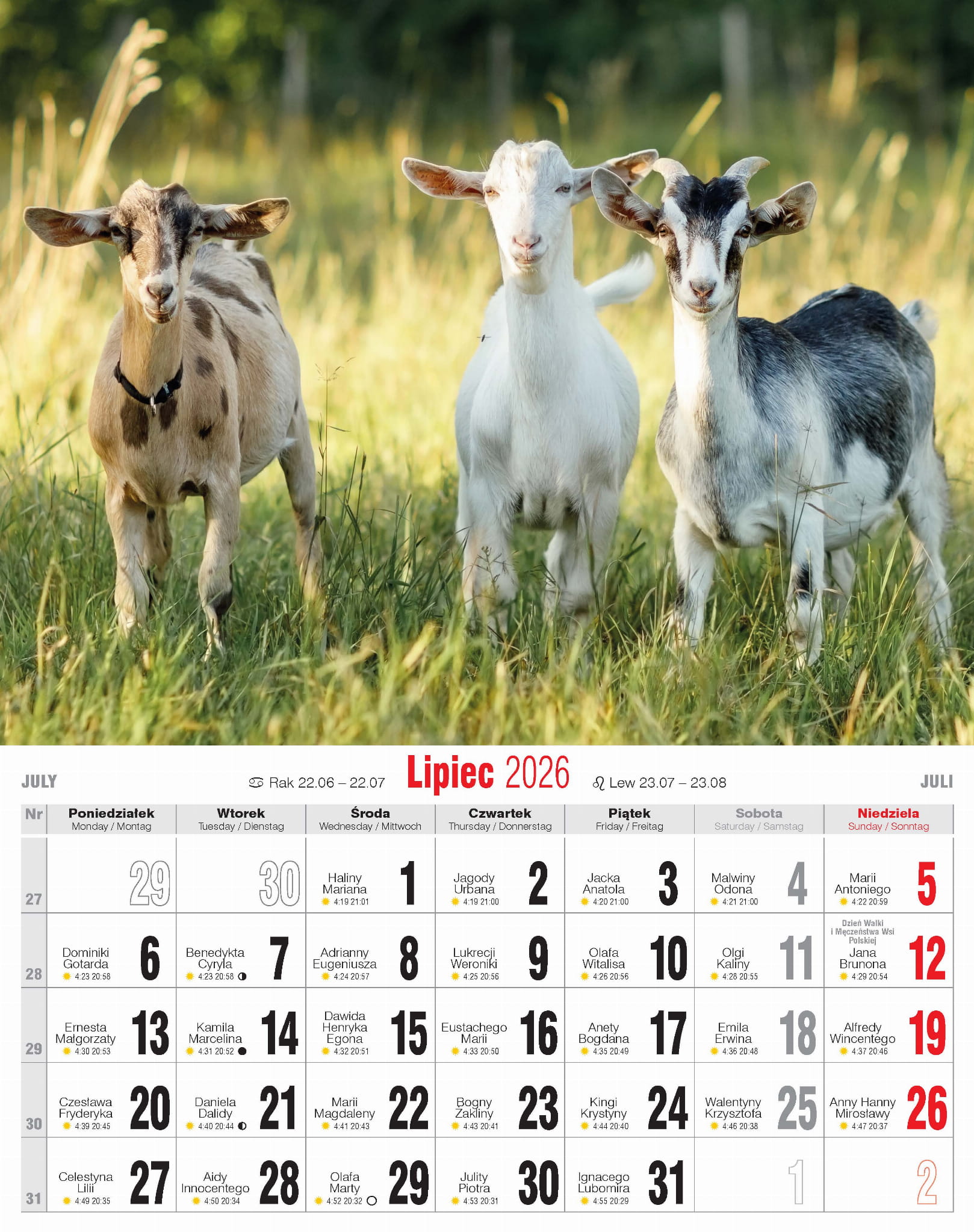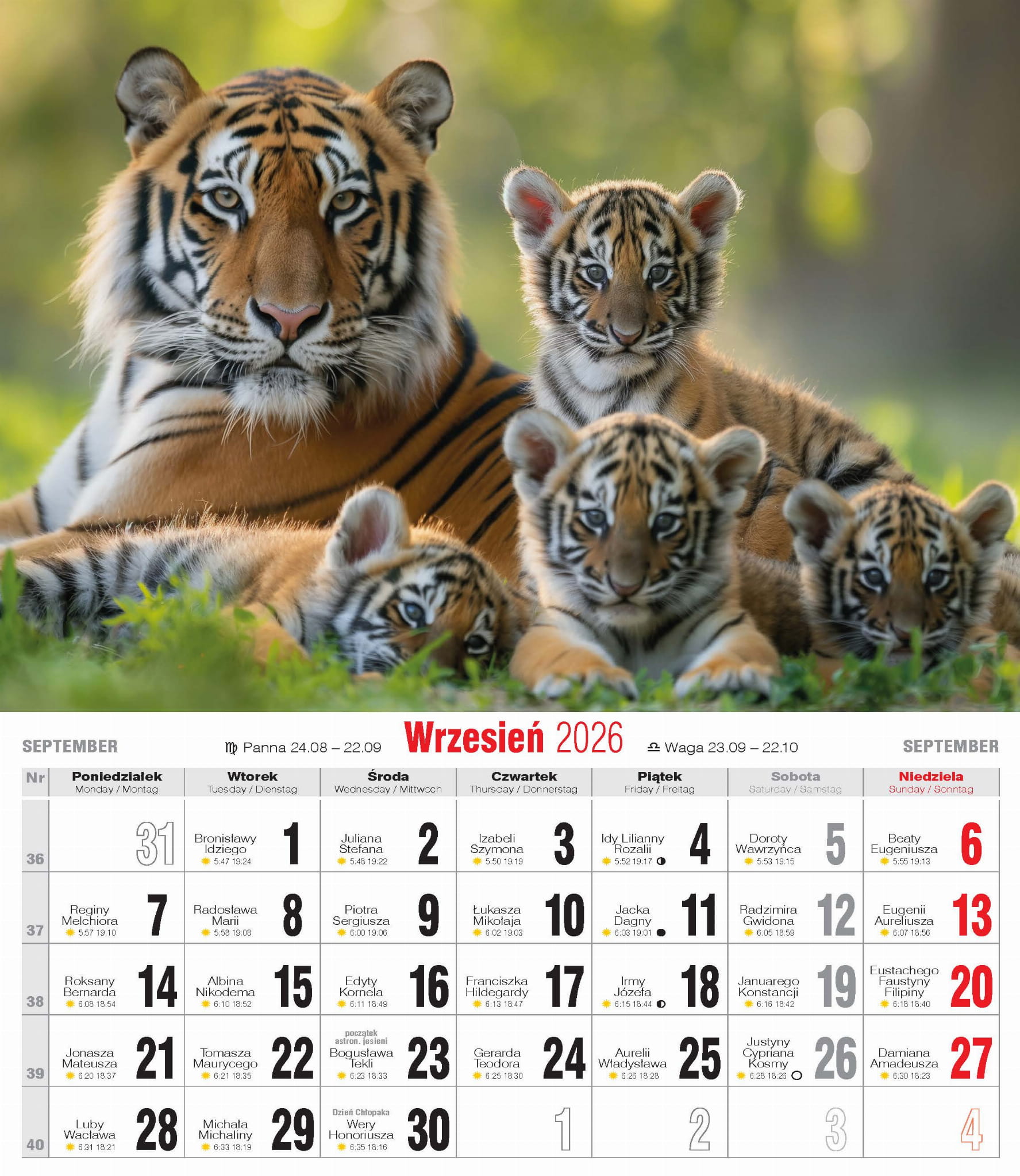 Wygodny, niewielki kalendarz ścienny, drukowany na papierze kredowym w oprawie spiralnej.