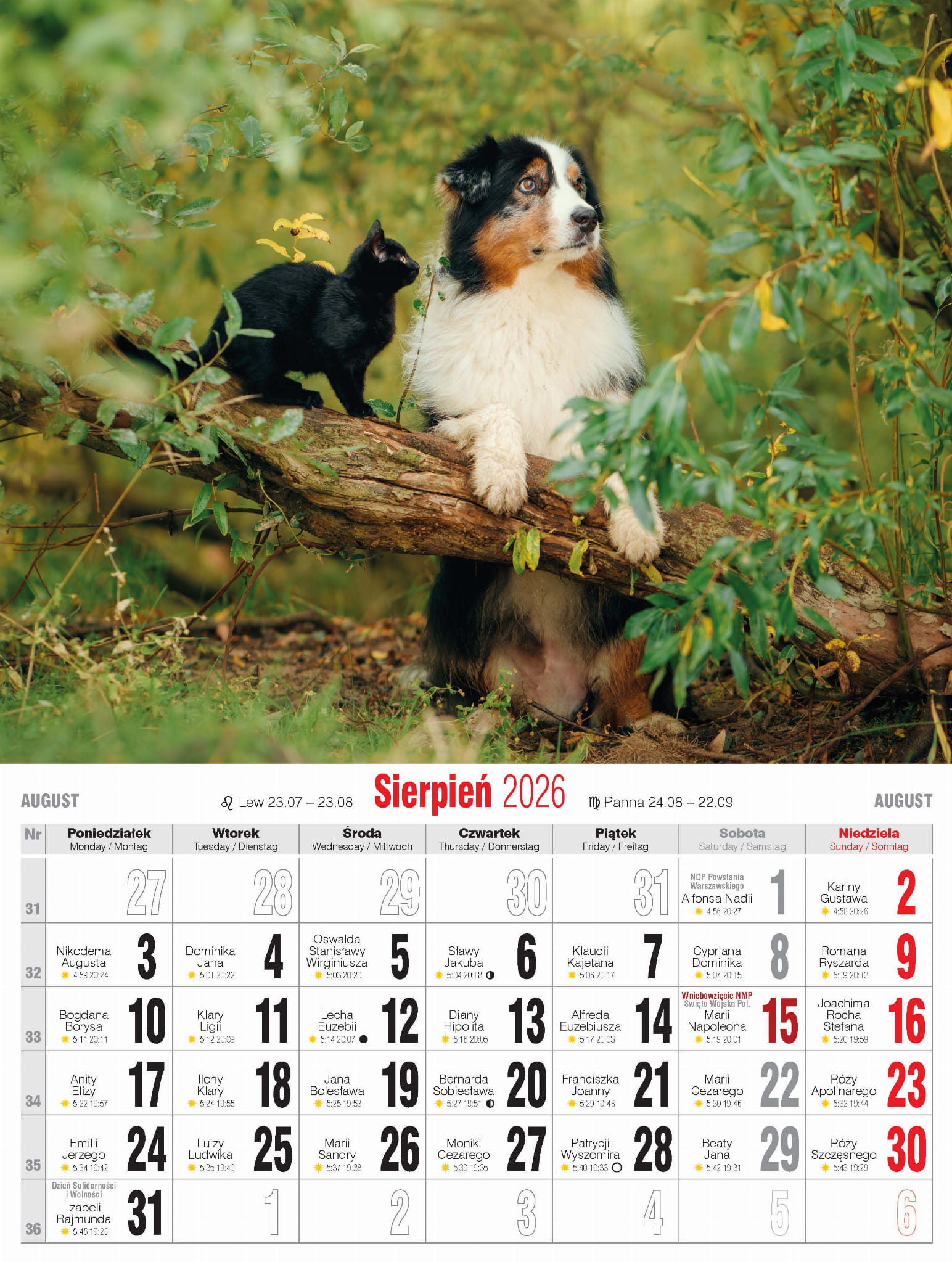 - nazwy miesięcy i dni tygodnia po polsku, angielsku i niemiecku