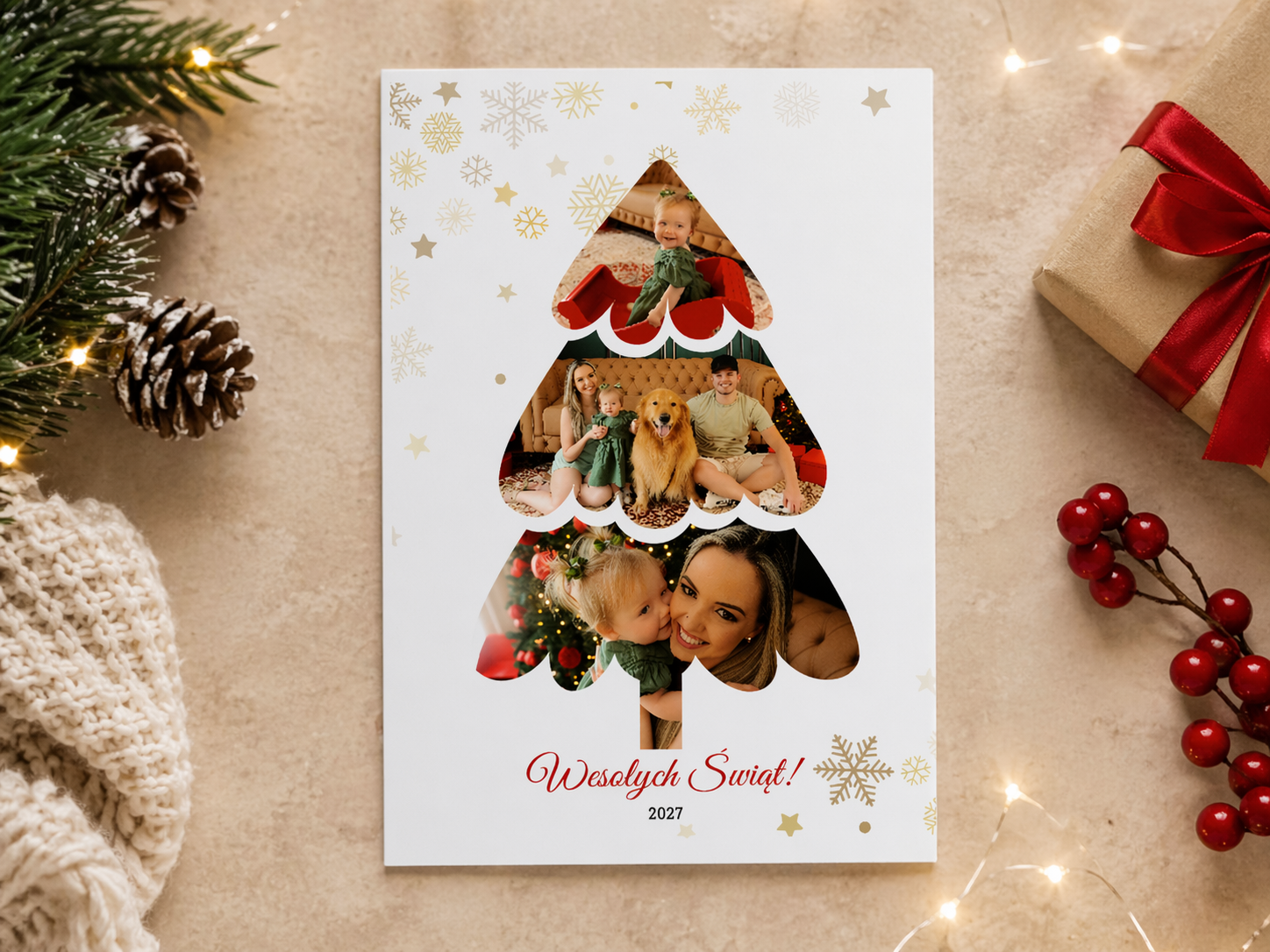 Stwórz wyjątkową kartkę świąteczną, która zachwyci bliskich i pozostanie piękną pamiątką na lata. Personalizowany projekt ze zdjęciami oraz imionami nadaje jej unikalny, osobisty charakter.