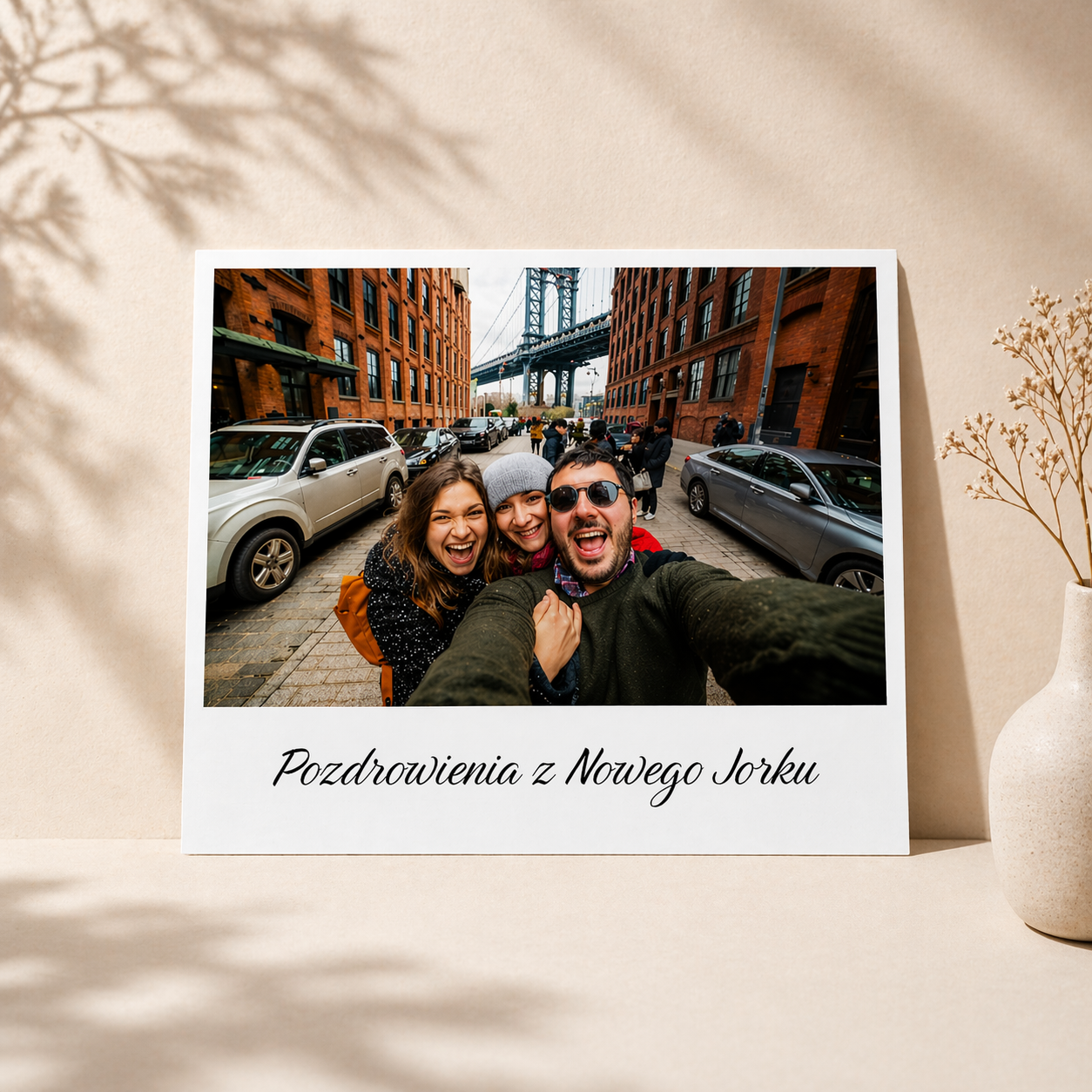 Zatrzymaj najpiękniejsze chwile i zamień je w stylową kartkę z podróży. Ten produkt to idealny sposób, aby podzielić się wspomnieniami z bliskimi lub stworzyć unikalną pamiątkę z ważnych momentów.