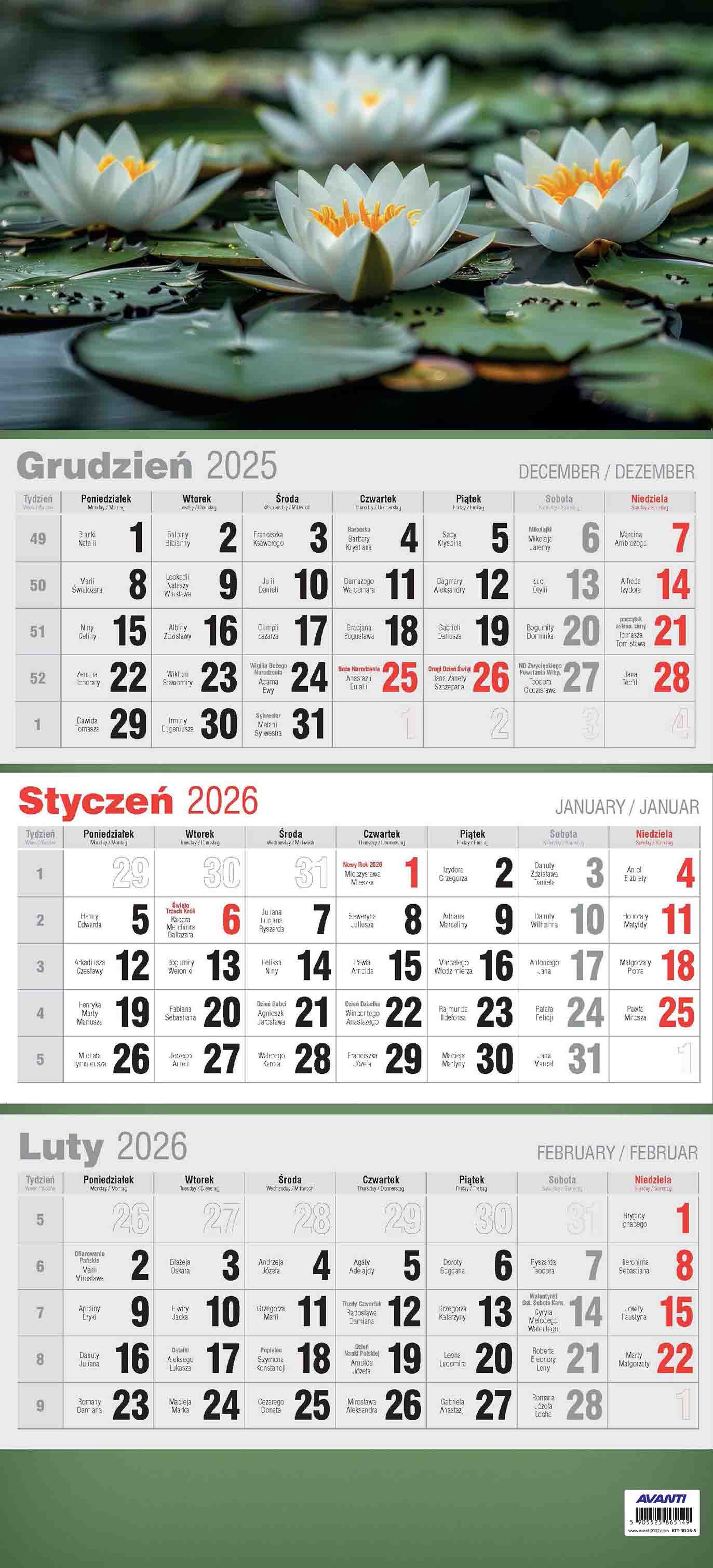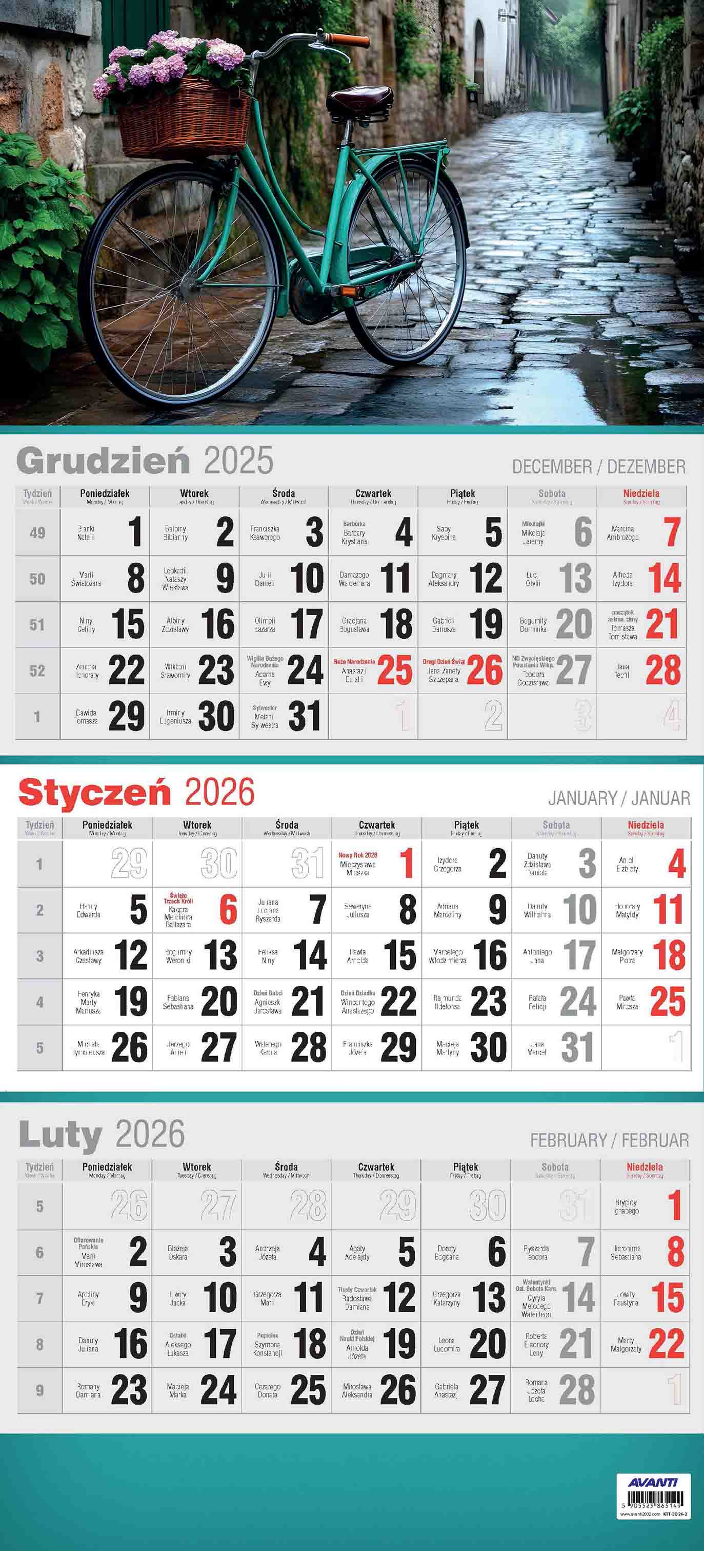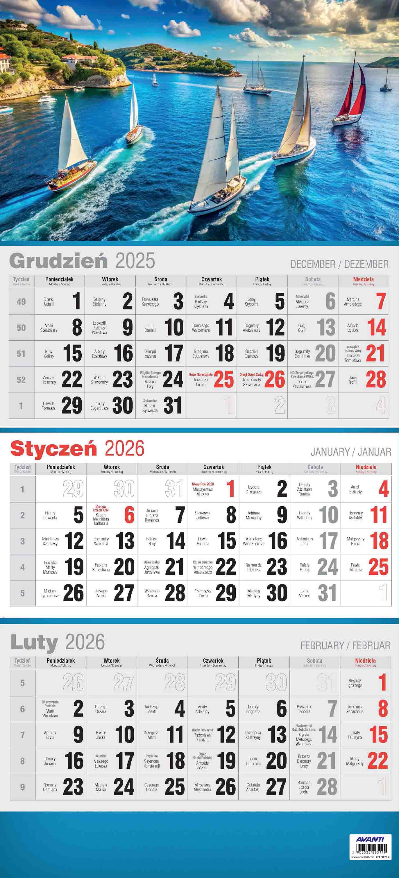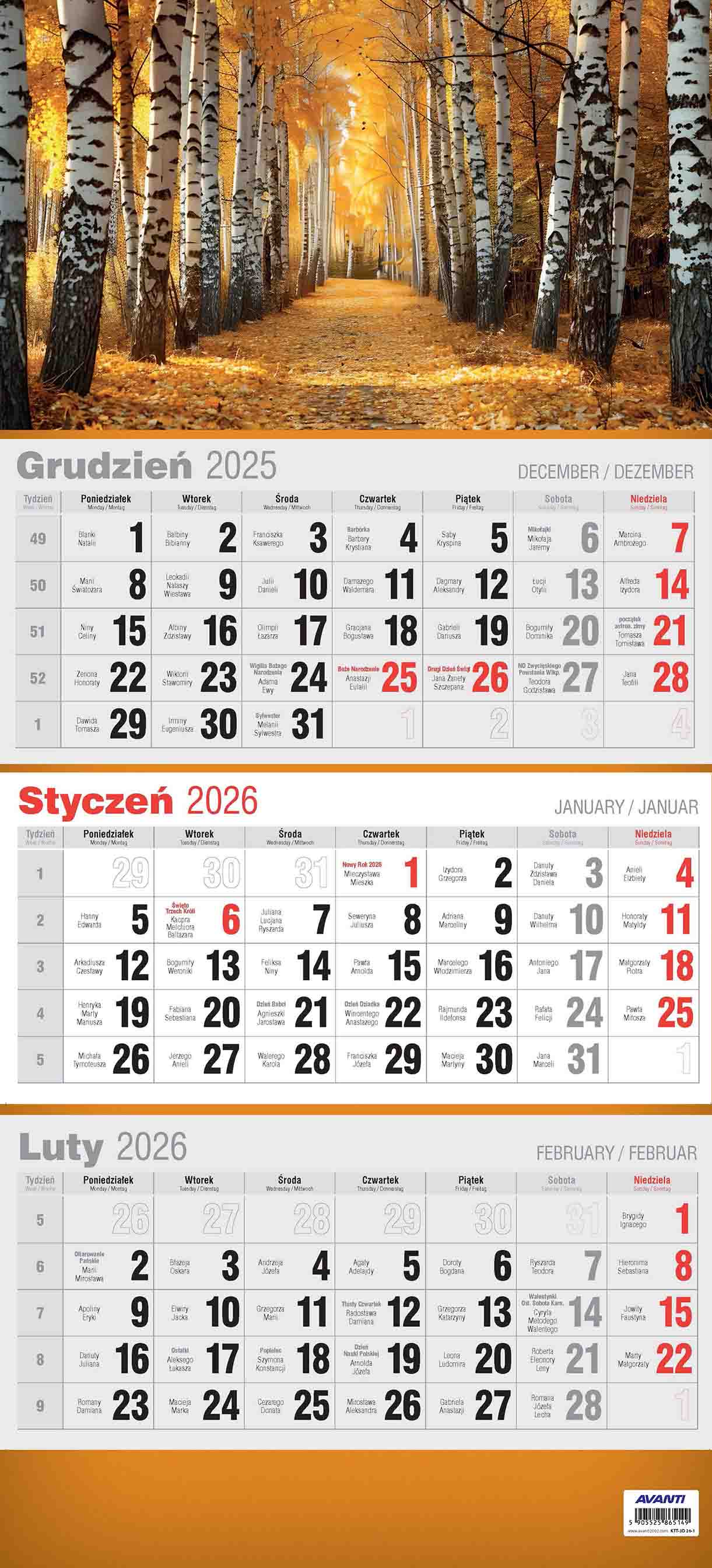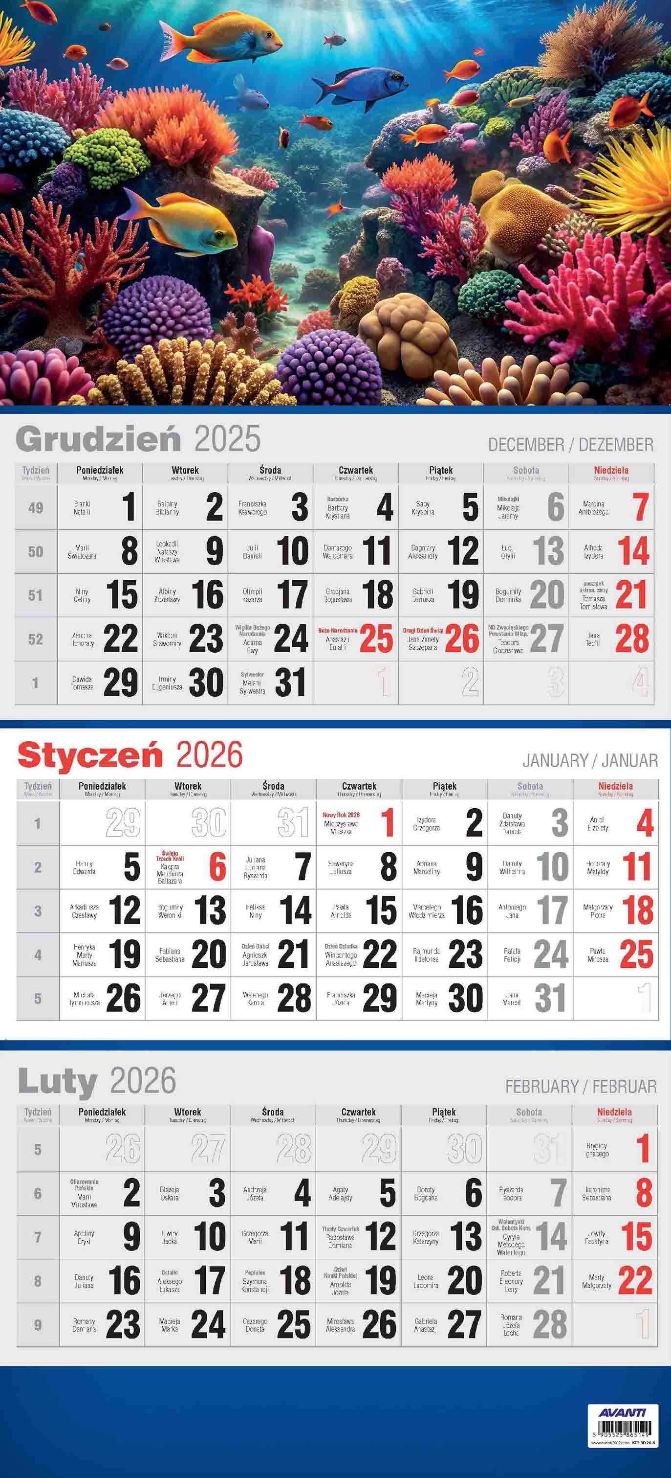 Kalendarz KTT 3D to prawdziwa ozdoba wnętrza. Kalendaria zawierają oznaczenia miesięcy i dni tygodnia w trzech językach (PL, EN, DE) oraz imieniny i typowe święta.